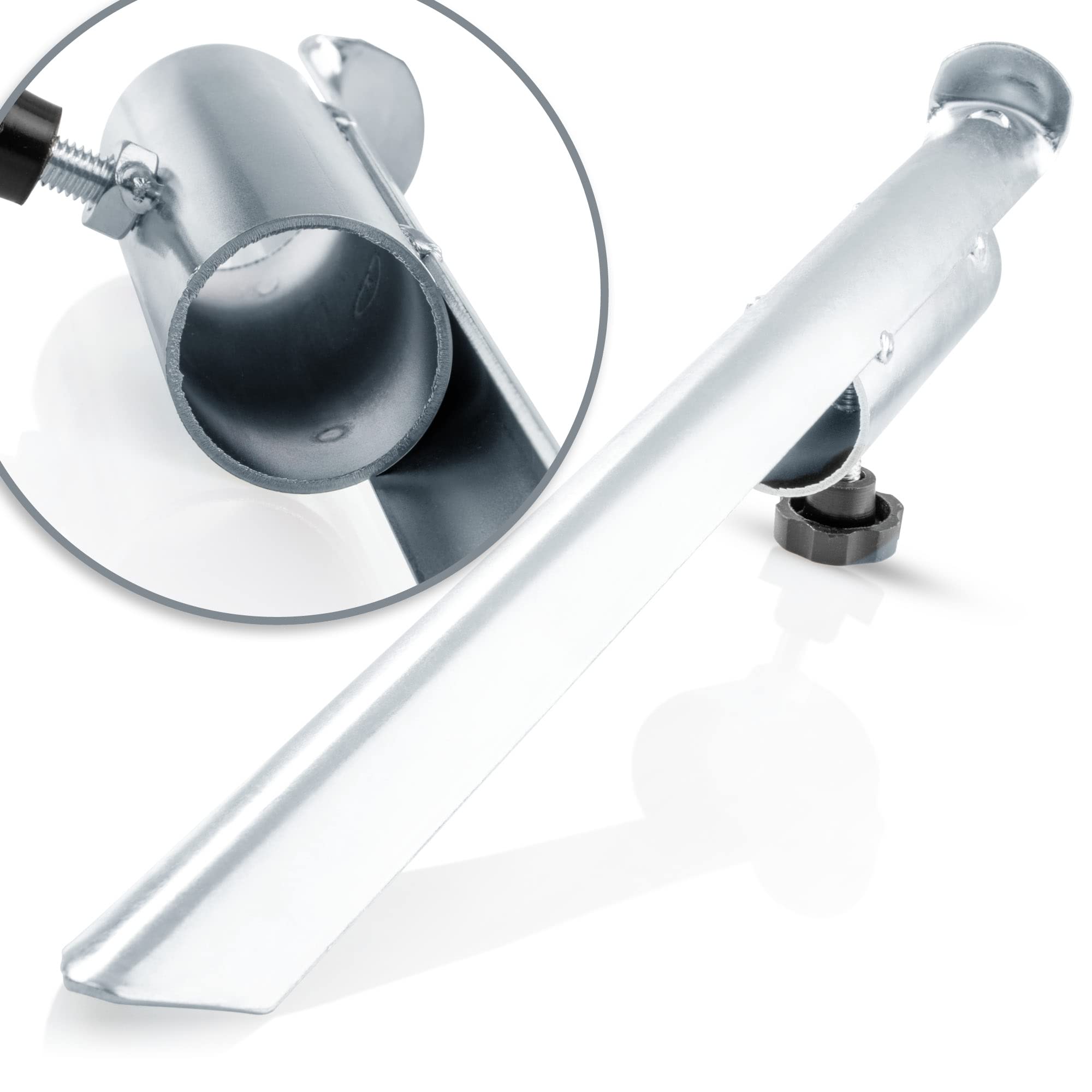 Die Halterung des Standfusses kann im Durchmesser von 12 - 32 mm verstellt werden und eignet sich somit für grosse und kleine Sonnenschirme!