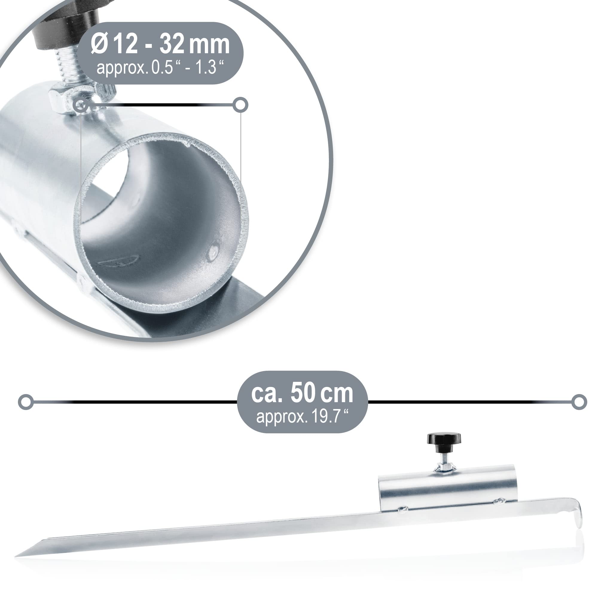 com-four® Sonnenschirmhalter aus verzinktem Stahl - Erdspiess für den Boden - Standfuss für Sonnenschirm am Strand - Schirmständer - Ø 12-32 mm (metallic)