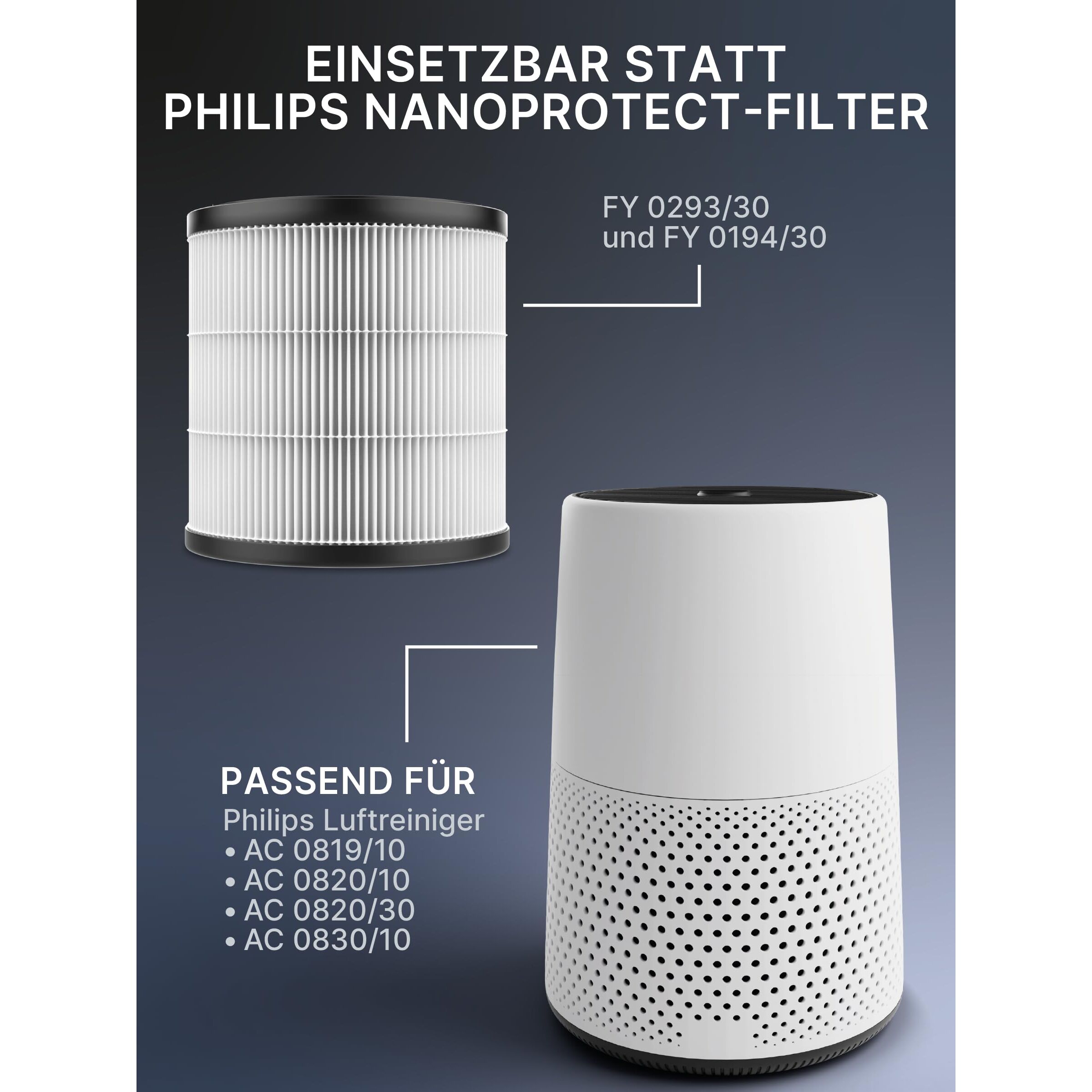 Comedes 3-in-1 Filter für Philips 800i Series Luftreiniger (AC810, AC0820 & AC0820), einsetzbar statt Philips FY0293/30 & FY0194/30 NanoProtect
