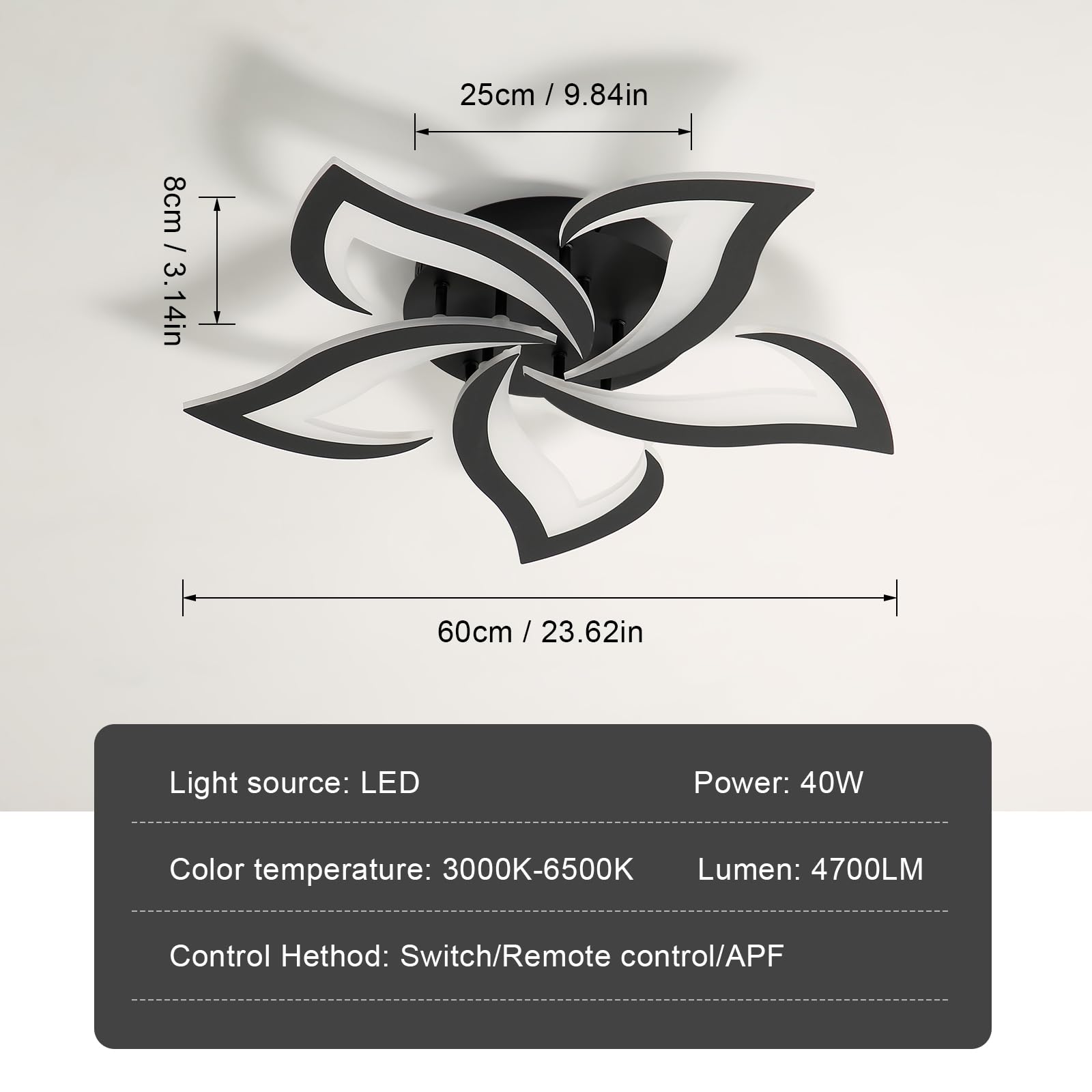 Comely Deckenlampe Led, Deckenleuchte Dimmbar, 40W 4200LM 3000k-6500k Mit Fernbedienung/APP, Moderne Deckenlampe für Wohnzimmer, Schlafzimmer, Kinderzimmer,Schwarz