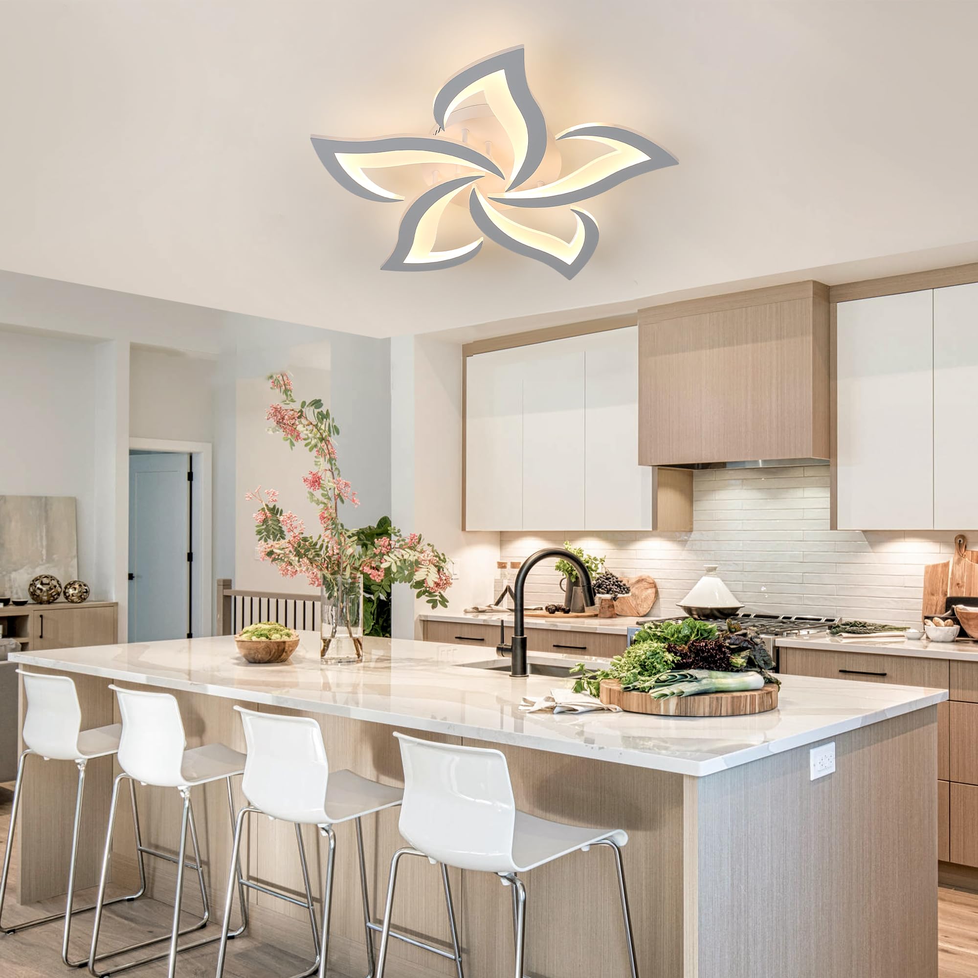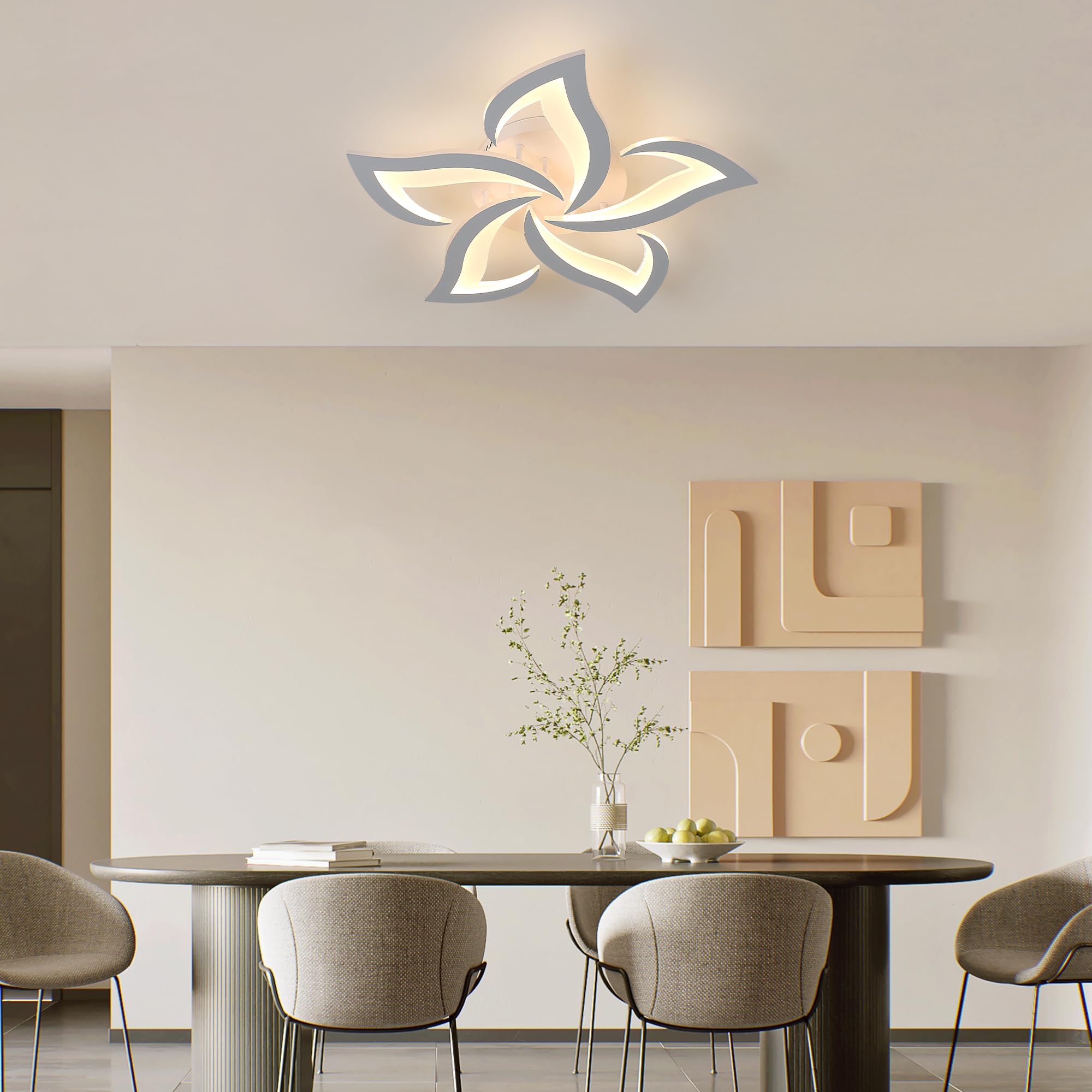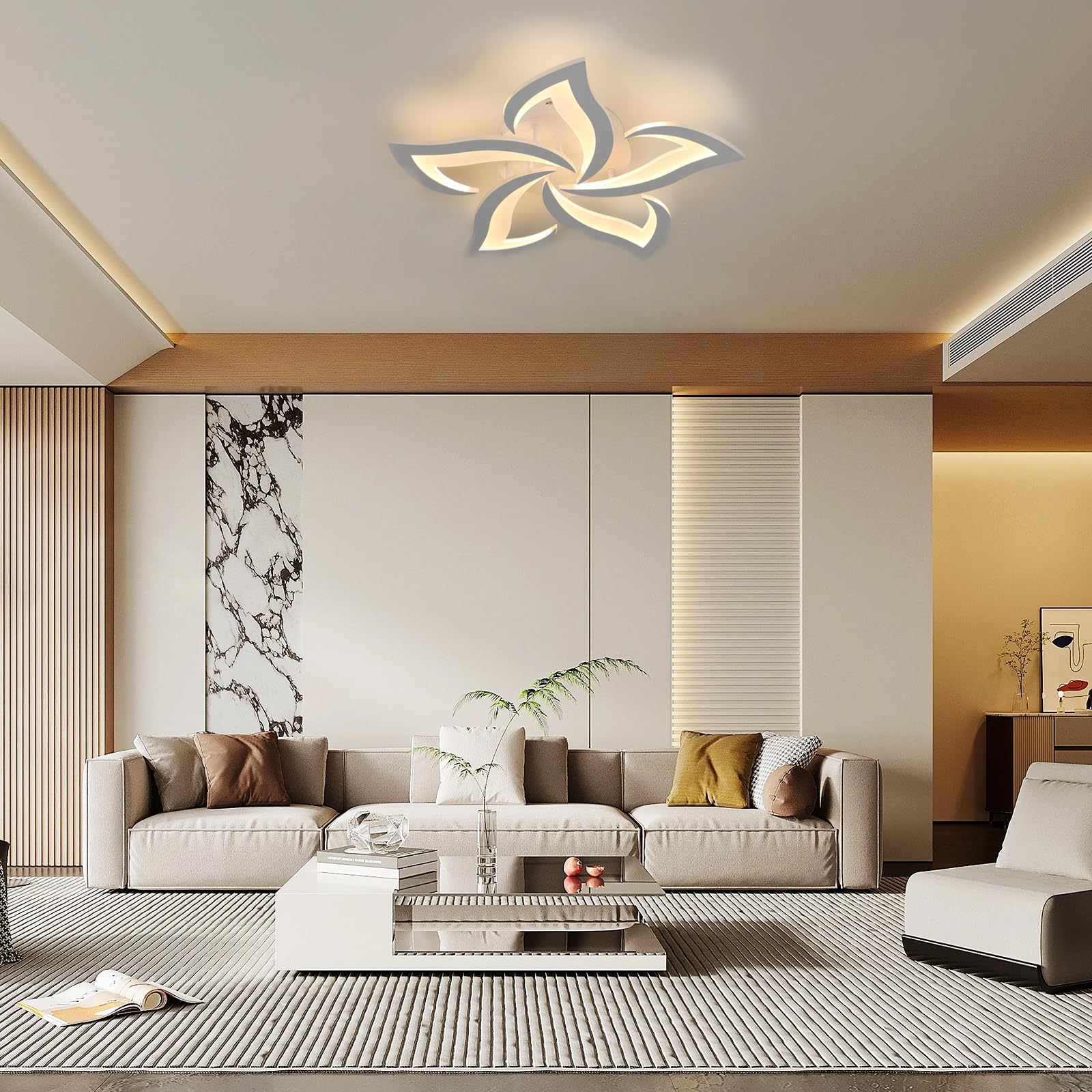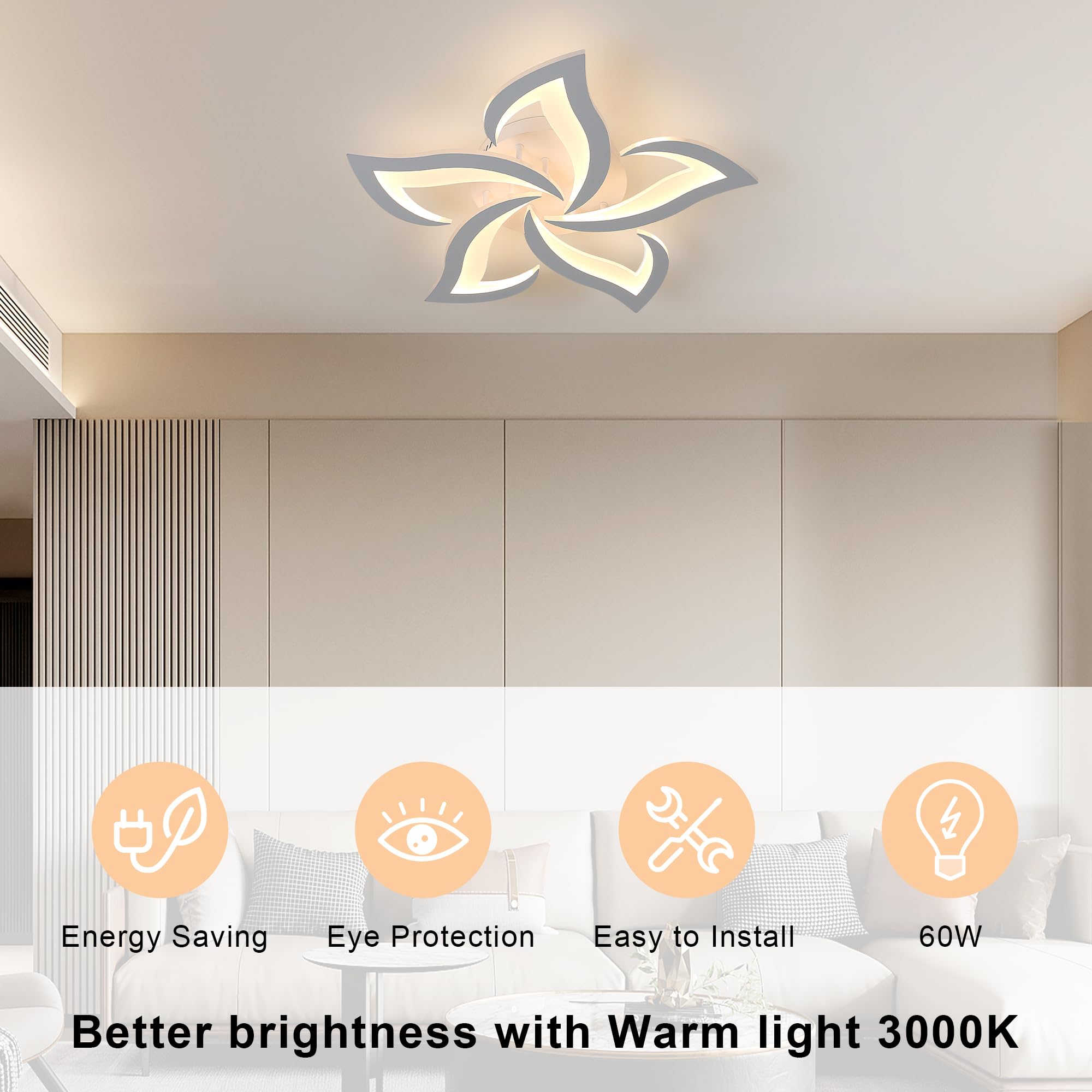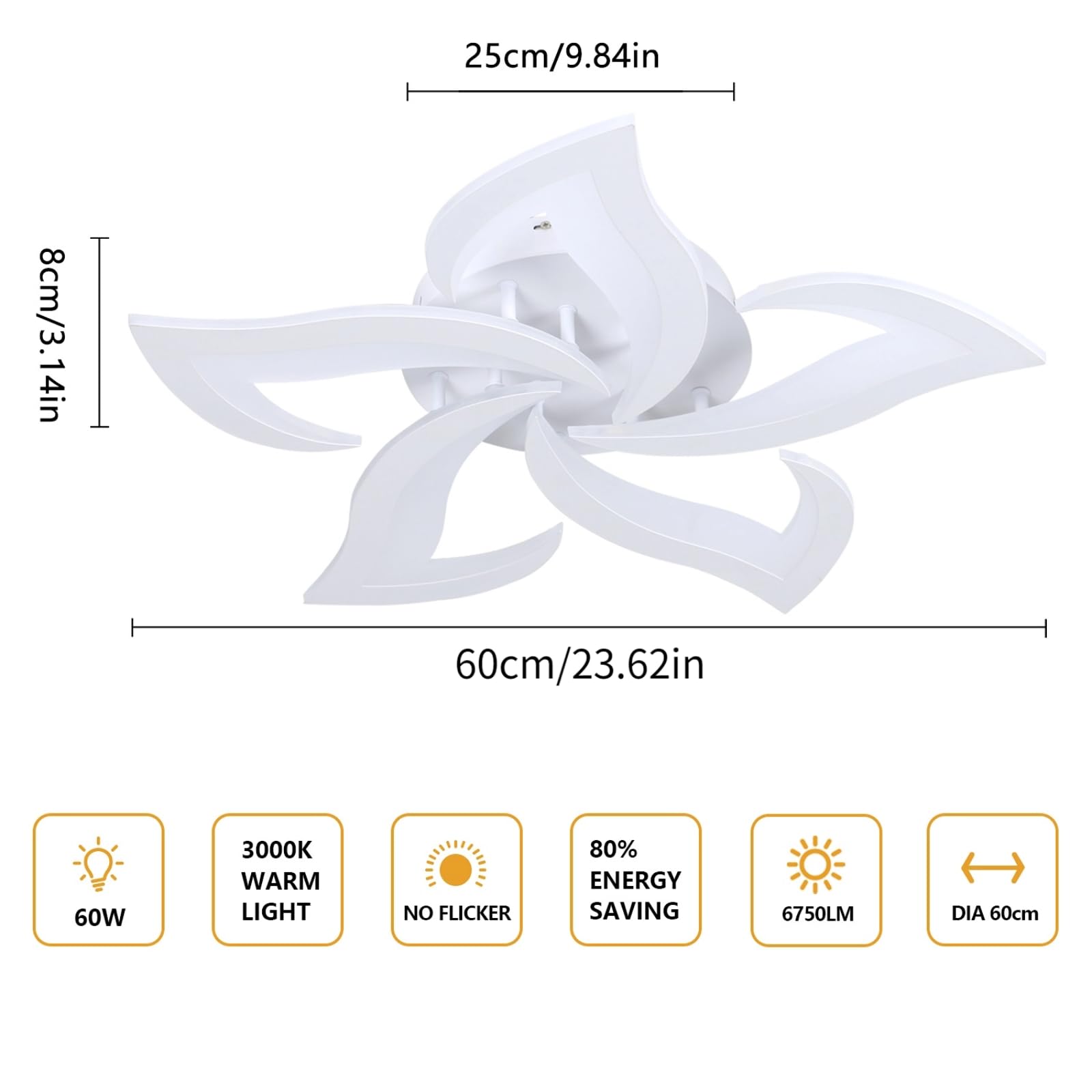 Comely Deckenlampe LED Wohnzimmer, 60cm 60W 6750LM LED Lampen Deckenleuchte, Moderne Blütenblatt Design Lampen für Wohnzimmer Küche Schlafzimmer Esszimmer, 3000K Warmweisses Licht, Weiss
