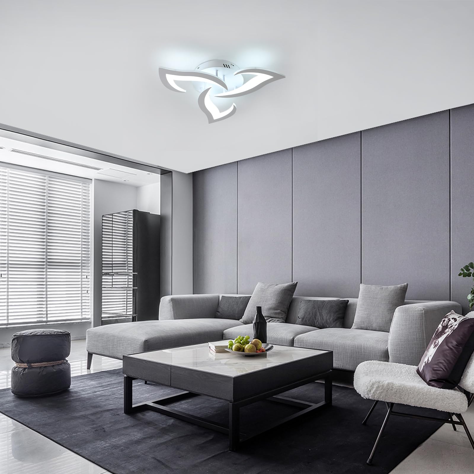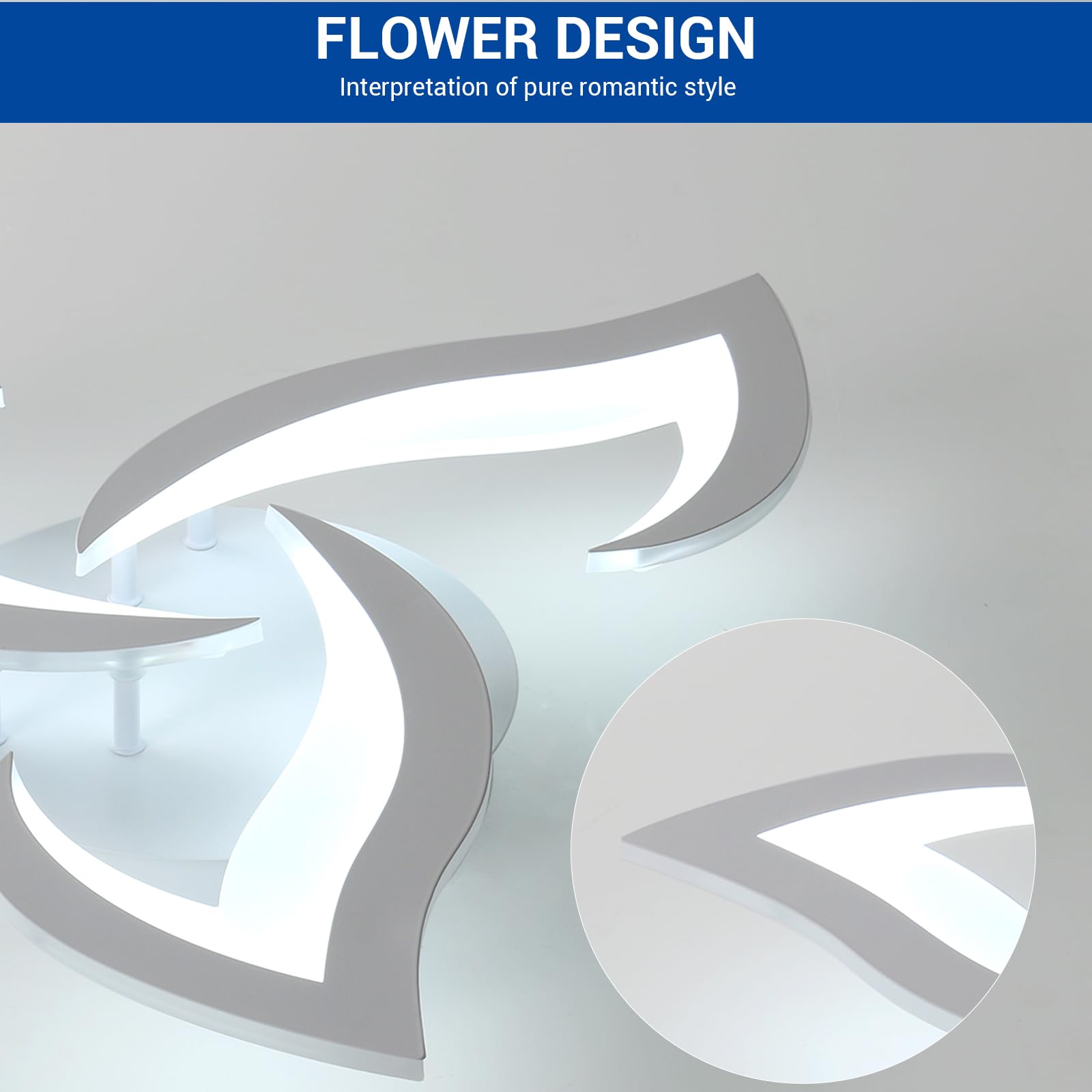 Comely Deckenlampe LED Wohnzimmer, 58cm 36W LED Lampen Deckenleuchte, Moderne Blütenblatt Design Lampen für Wohnzimmer Küche Schlafzimmer Esszimmer, Kaltweisses Licht 6500K, Weiss