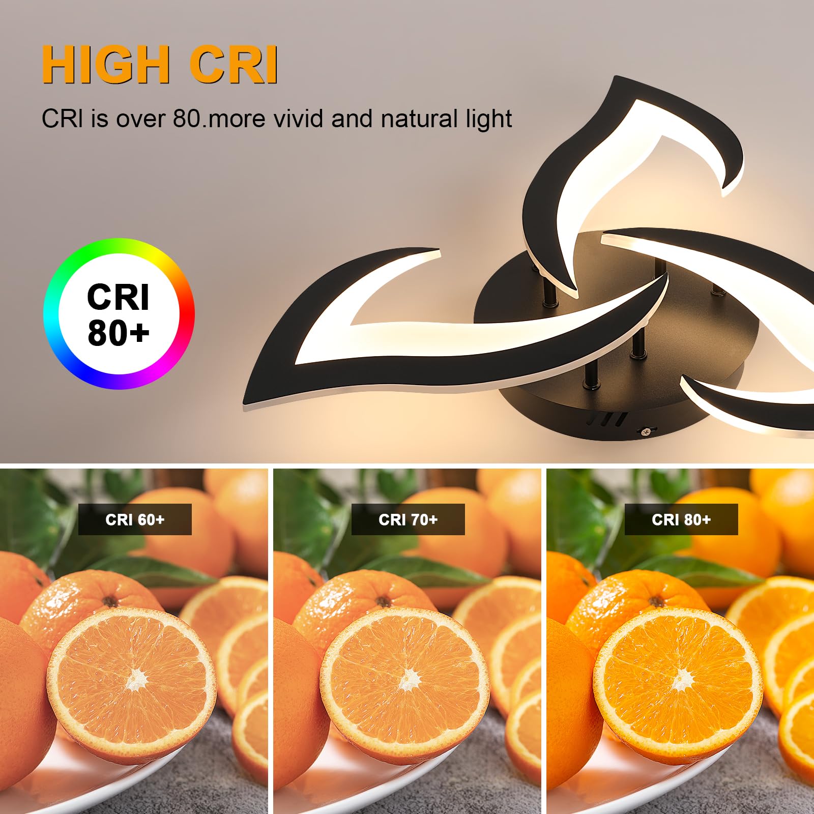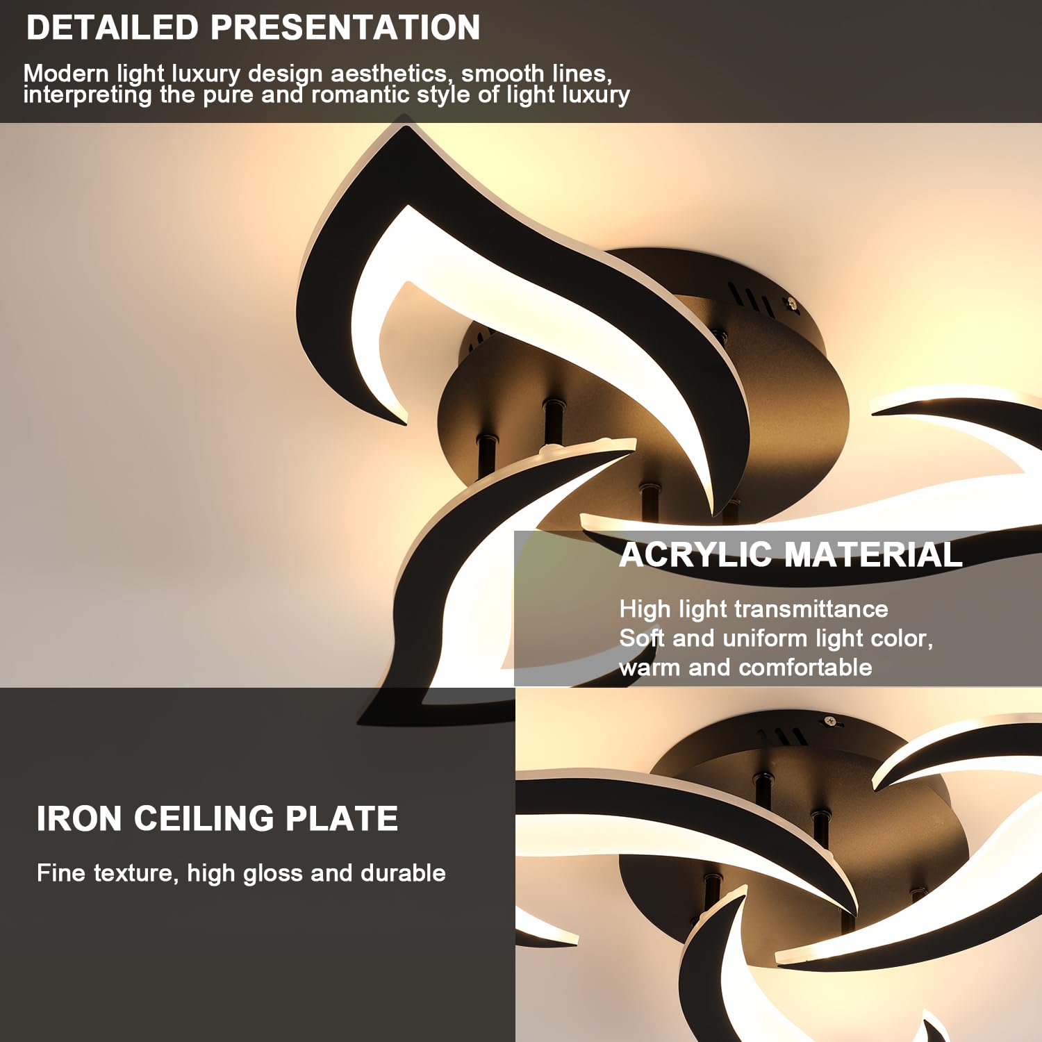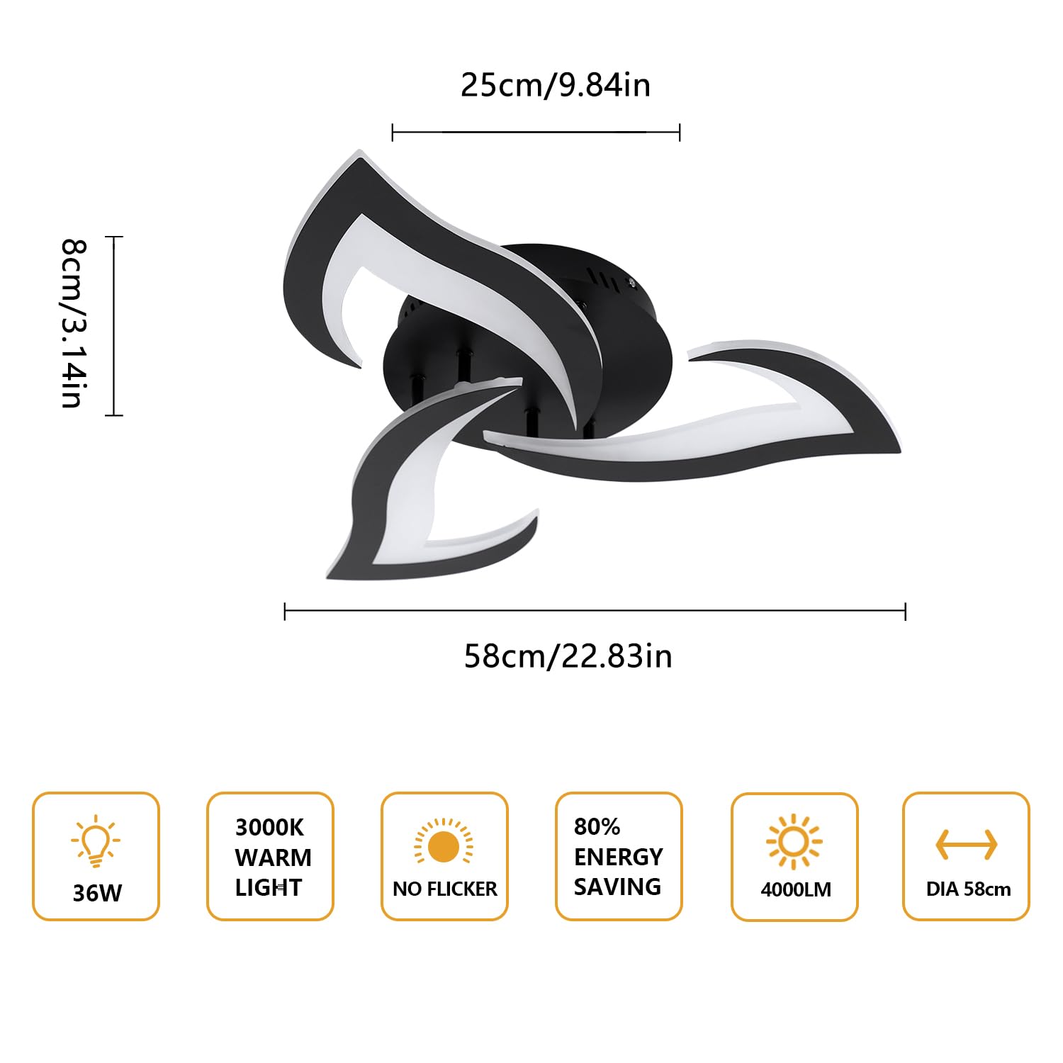 Comely Deckenlampe LED Wohnzimmer, 58cm 36W 4000LM LED Lampen Deckenleuchte, Moderne Blütenblatt Design Lampen für Wohnzimmer Küche Schlafzimmer Esszimmer, 3000K Warmweisses Licht, Schwarz