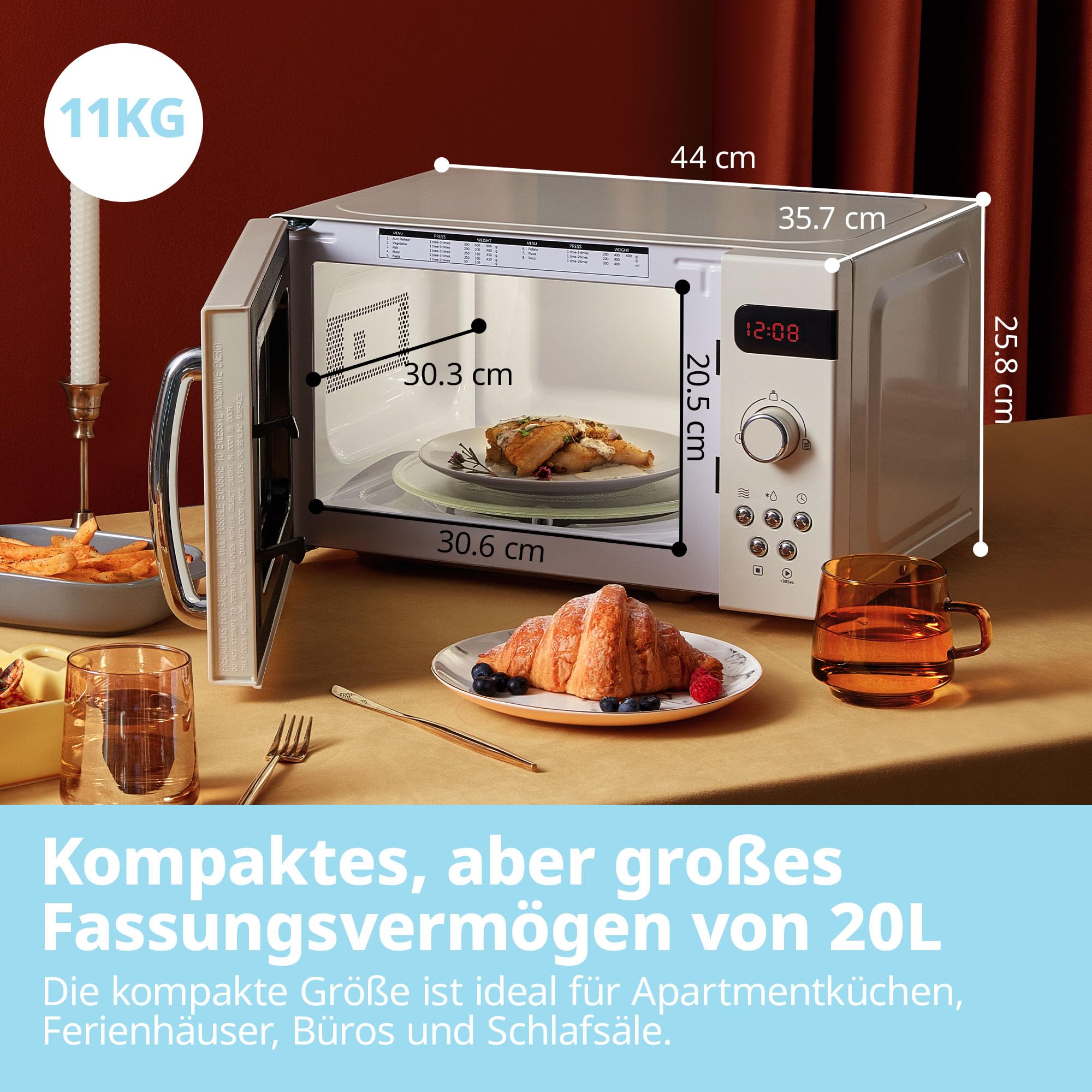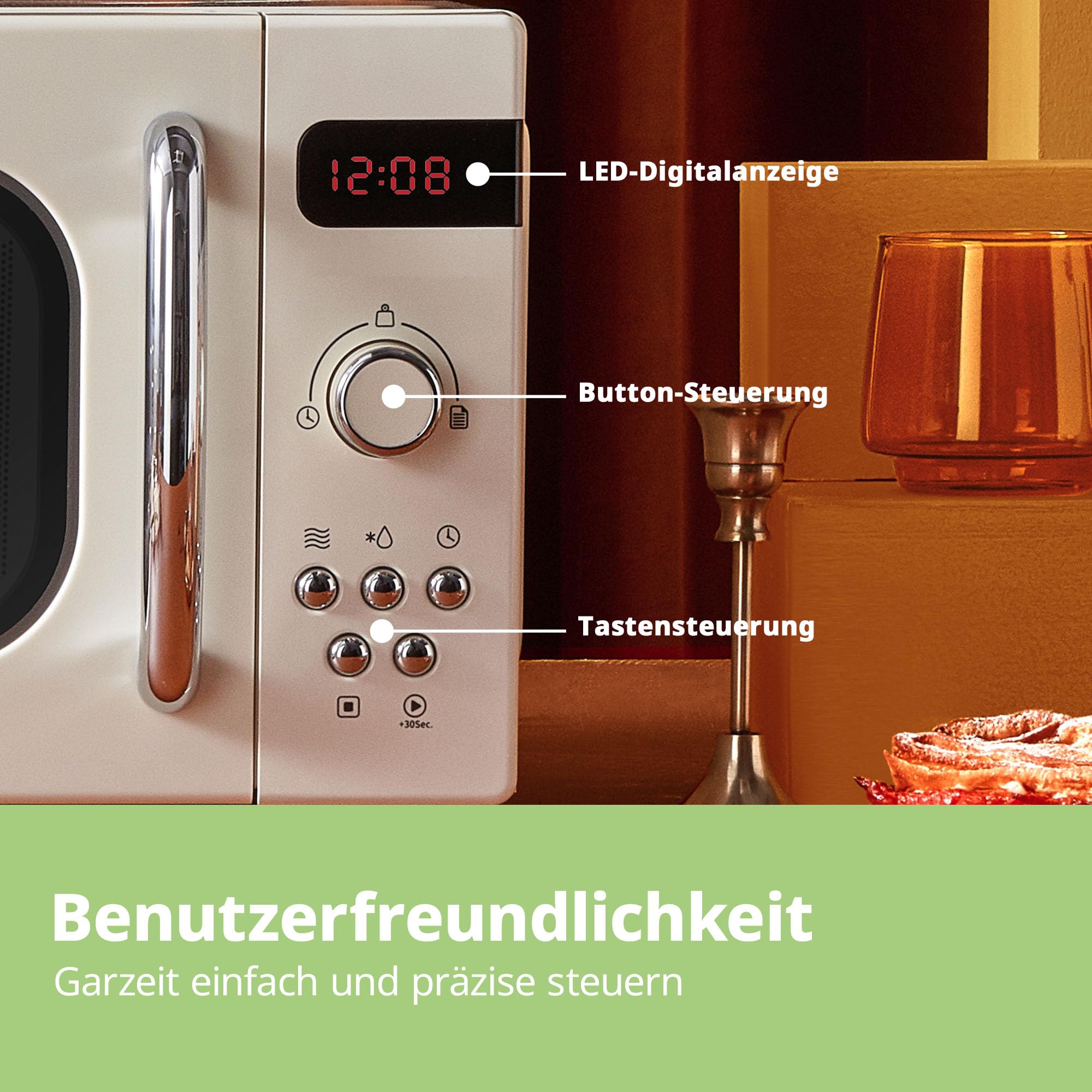 Comfee CMSRO 20 di cr Mikrowelle im Retro-Stil / Retro-Mikrowellenherd mit 8 Auto-Menüs, 5 Kochleistungsstufen, Express-Kochtaste,Express-Kochtaste, 20L, 800W, Apricot Cream