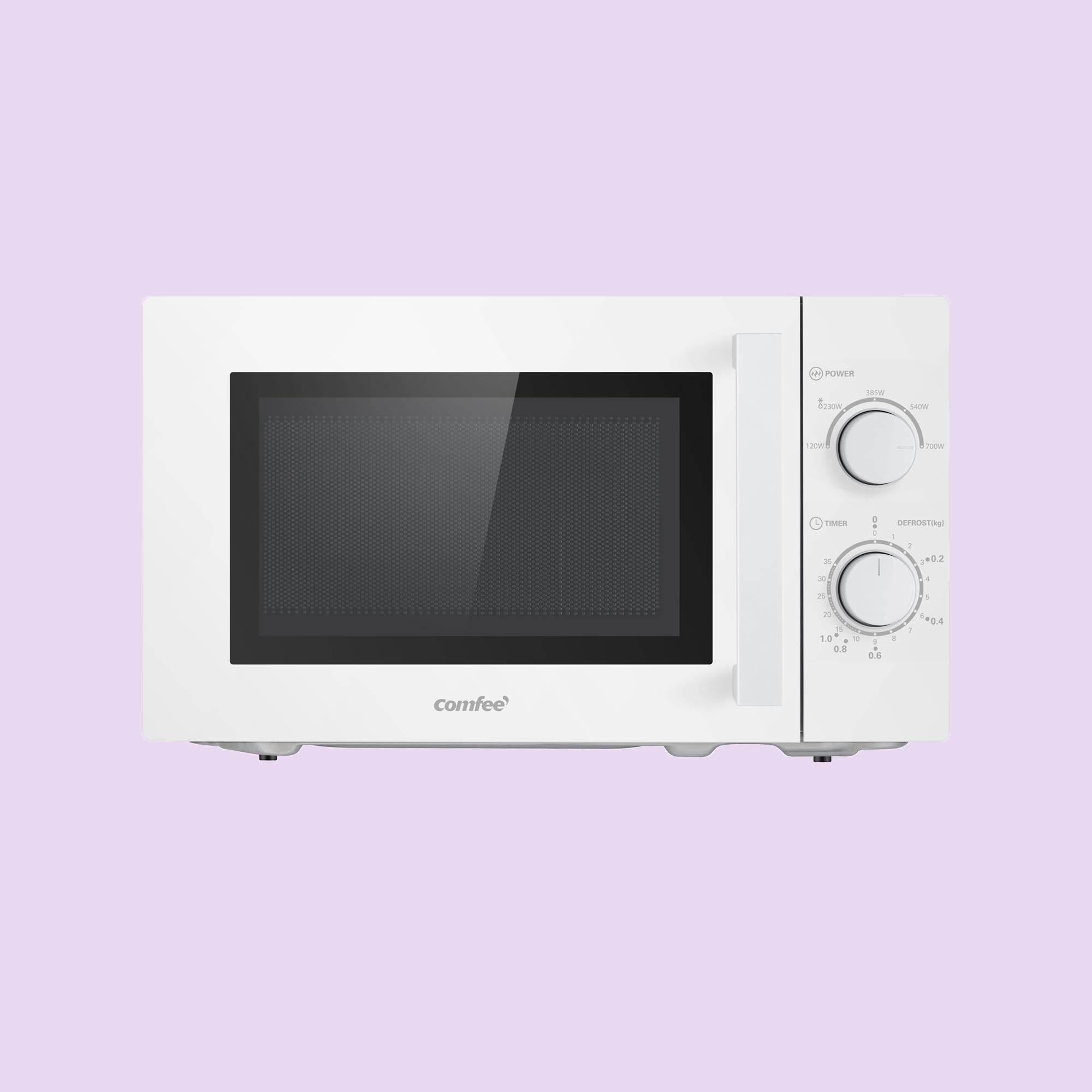 Comfee CMSN 20 wh Mikrowelle / Solo-Mikrowelle mit 5 Leistungsstufen/ Innenbeleuchtung/ easy Defrost/360°Drehteller / Zwei Drehregler/20L/700W/ Weiss, Mechanisch