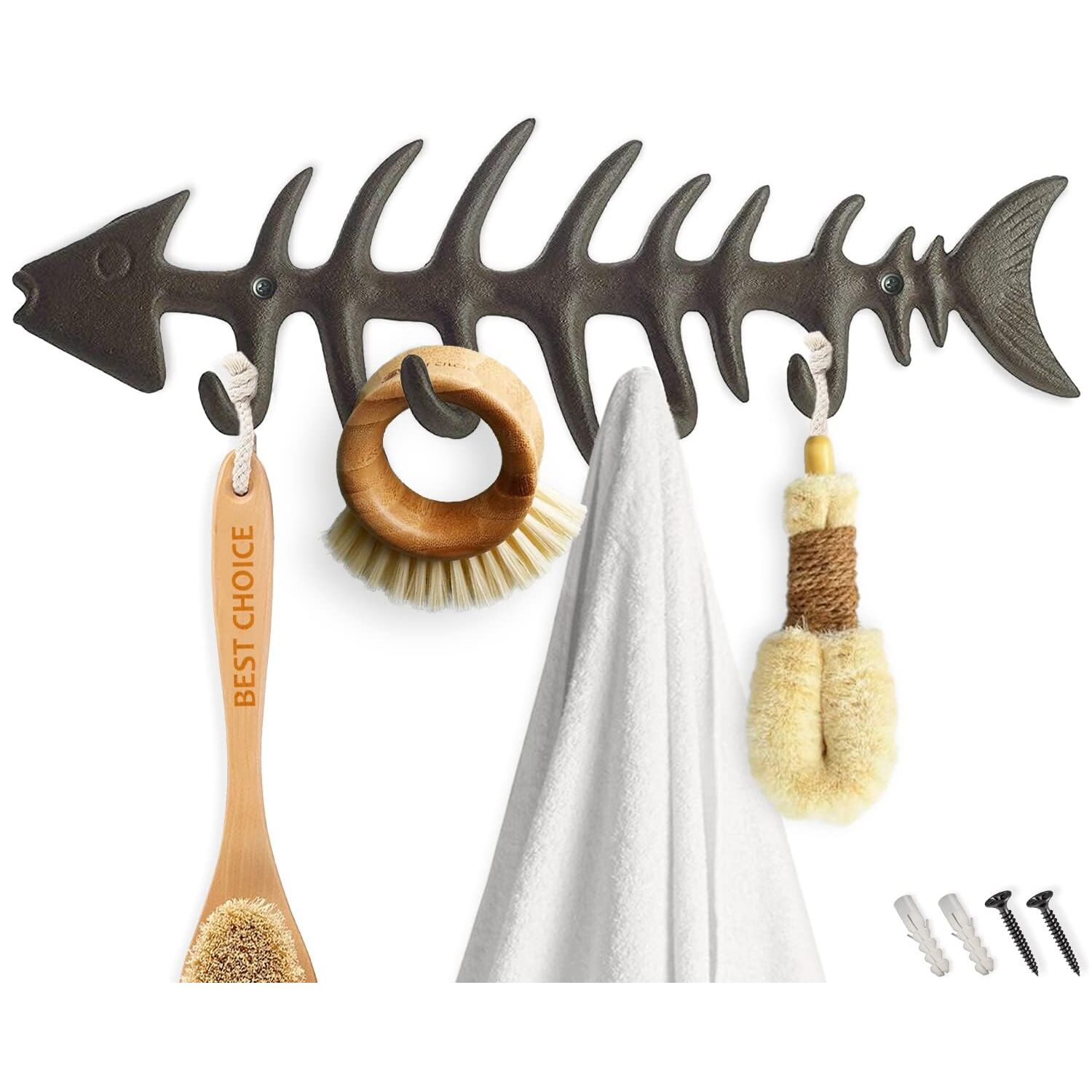 Comfify Dekorativer Fischgräten Handtuchhalter - Stilvoller Gusseisenbügel mit 4 "Gräten-Haken - Inklusive Schrauben und Dübeln