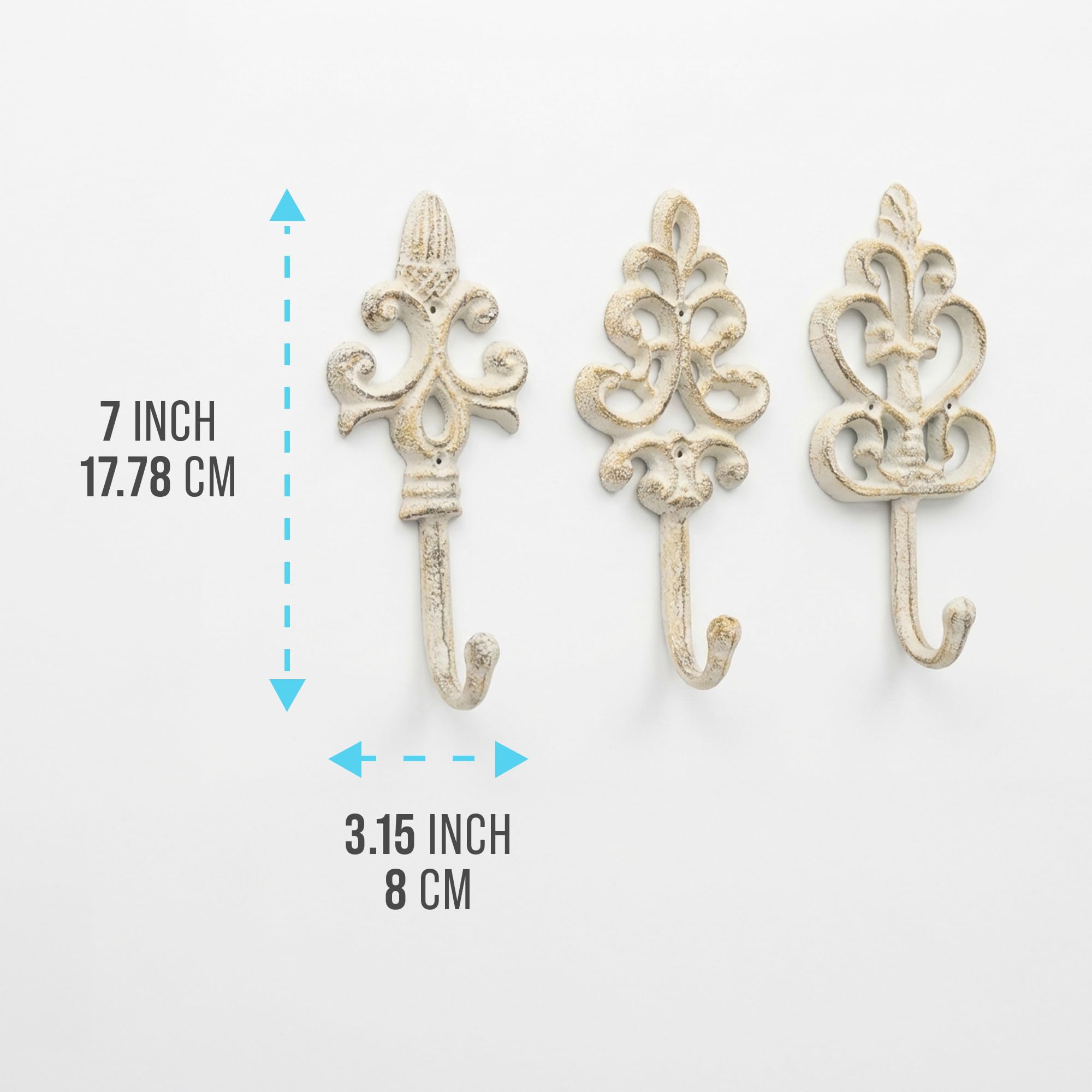 Comfify Dekorativer Shabby Chic Wandhaken - Rustikal - Antik anmutend - Französischer Landhaus-Charme - Grosse Dekorative Hängehaken - 3er Set - Schrauben und Dübel zur Montage inklusive