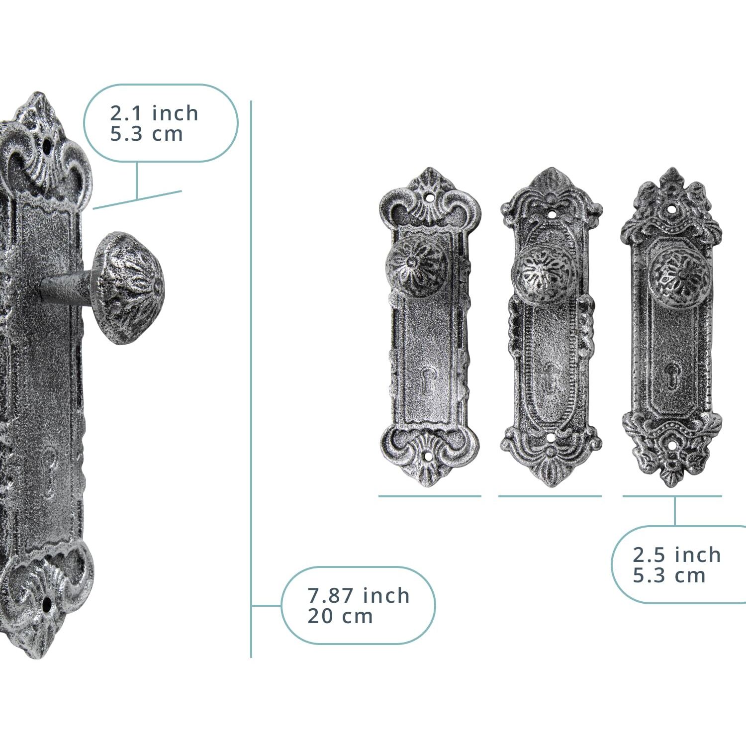 Shabby Chic Dekorative Gusseisen-Wandhaken, Silber mit Schwarz, Türknauf-Kleiderhaken für Wand, 3er Set, Schrauben und Dübel enthalten, Antike Wandhaken zum Aufhängen von Kleidung