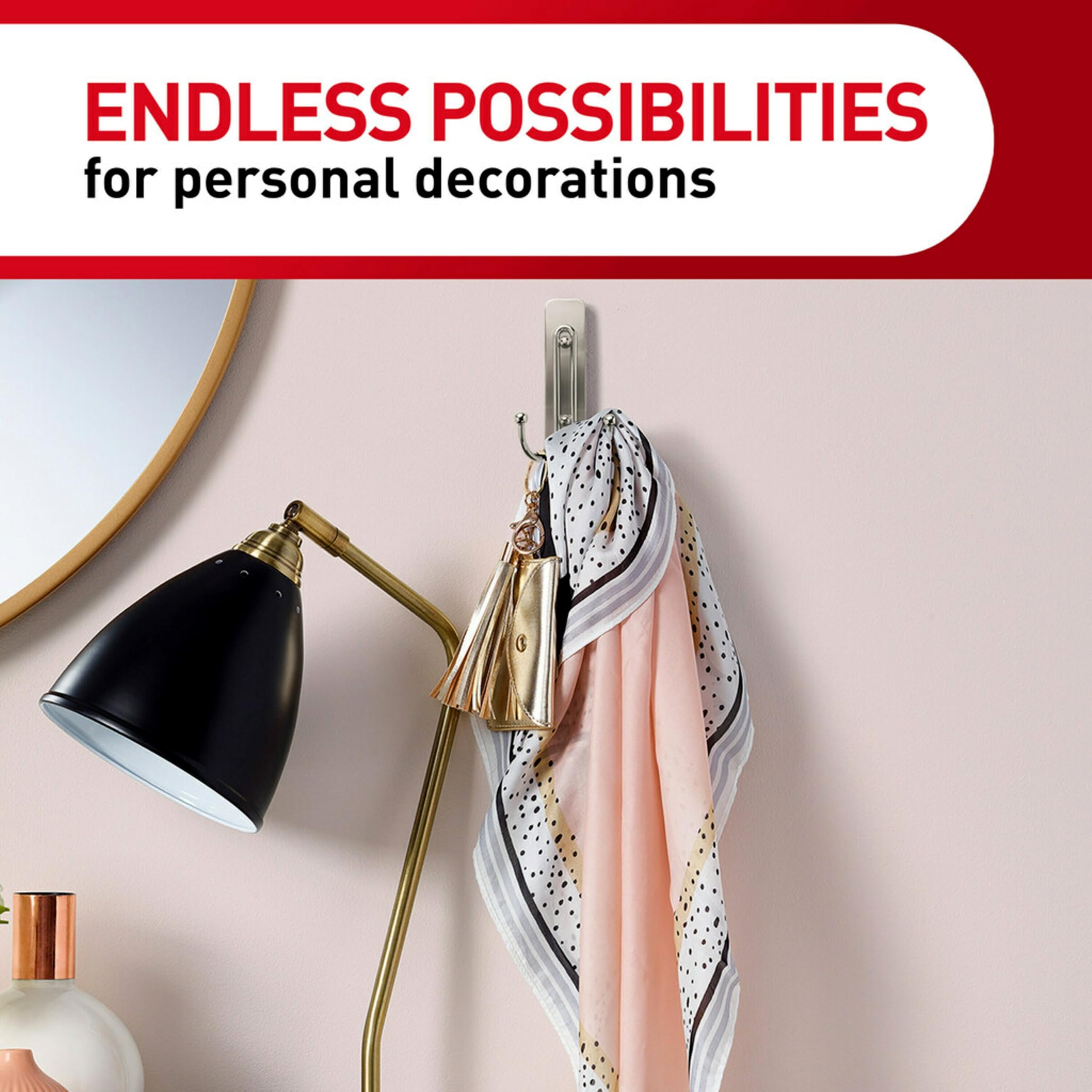 Command™ Dekorative Haken gibt es in einer Vielzahl von Stilen – von anspruchsvoll bis lustig und verspielt – so haben Sie Optionen für jeden Raum und jede Person in Ihrem Zuhause. Mit Command™-Kleber halten Command™ dekorative Haken stark auf einer Vielzahl von Oberflächen, einschliesslich Farbe, Holz, Fliesen und mehr. Dennoch lassen sie sich auch sauber ablösen – keine Löcher, Spuren, klebrige Rückstände oder Beschädigungen – so können Sie Ihre Command™ Haken beliebig oft abnehmen und bewegen. Die Wiederverwendung ist so einfach wie das Auftragen eines Command™-Nachfüllstreifens, so dass Sie sie wieder und wieder abnehmen, bewegen und wiederverwenden können