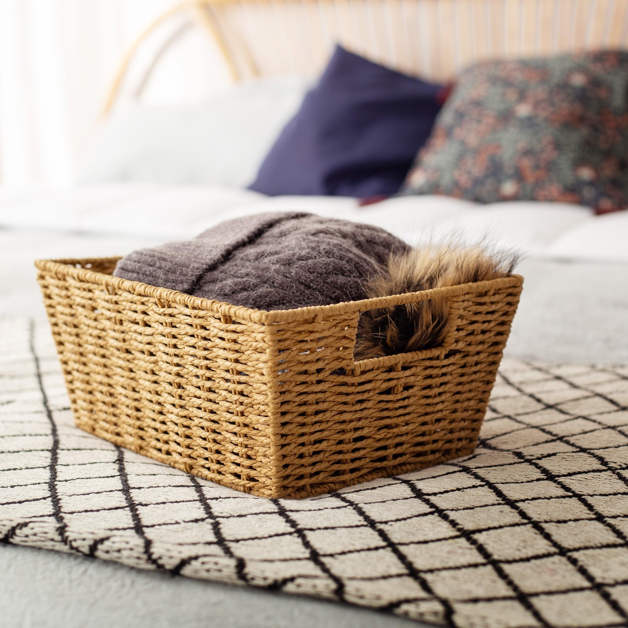 Compactor RAN6542 handgefertigter Korb aus Papier, rechteckig, helles Holz, 31 x 24 x Höhe 14 cm