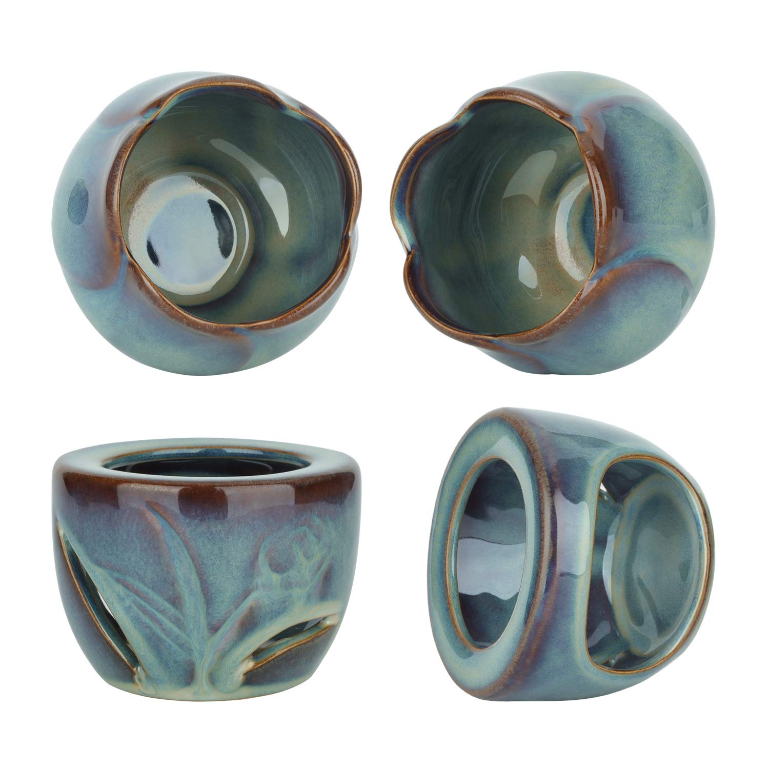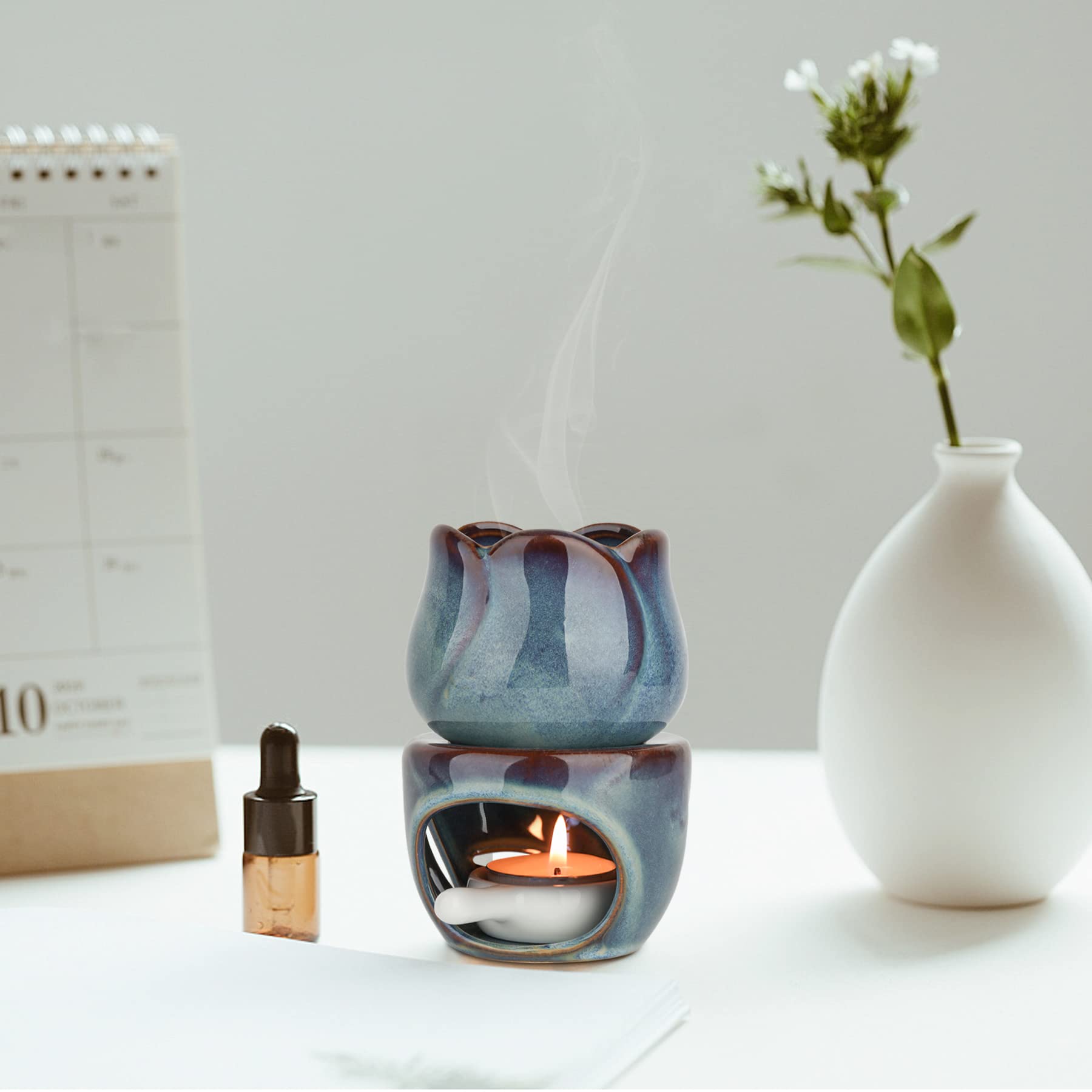 ComSaf Duftlampe für ätherische Öle, mit Teelichtlöffel, Abnehmbarer Aromatherapie-Brenner aus Blauer Keramik, Aroma-Öl-Kerzendiffusor, Duftwachstörtchen für Zuhause, Schlafzimmer, Dekoration
