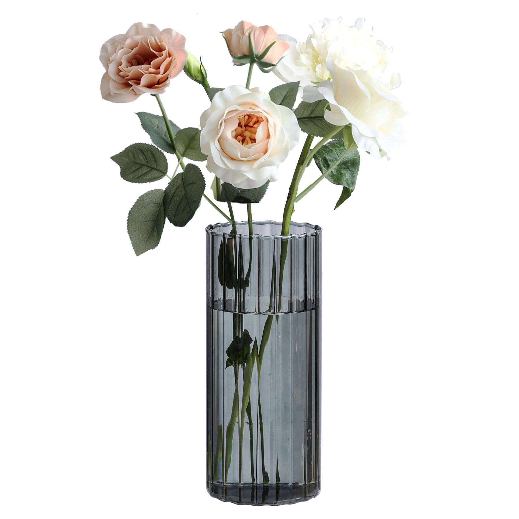 ComSaf Kleine Vasen Deko für Tischdeko, Modern Blumenvase Glas, Mini Vase Tulpen Set, Glasvase Zylinder Rund Gross, Tulpenvase für Tulpen, Pampasgras, Orchideen, Rosen, 20 cm Hoch, Grau