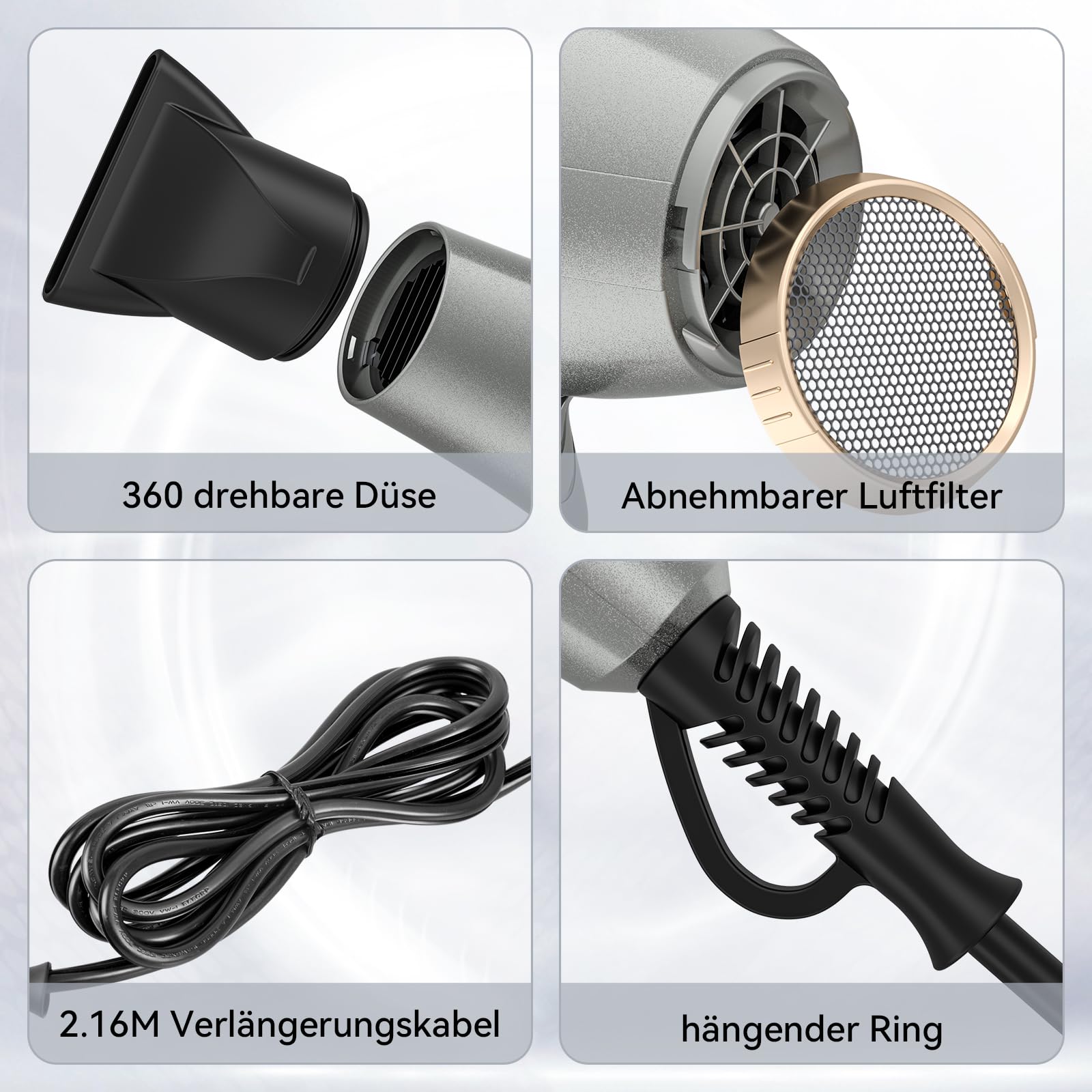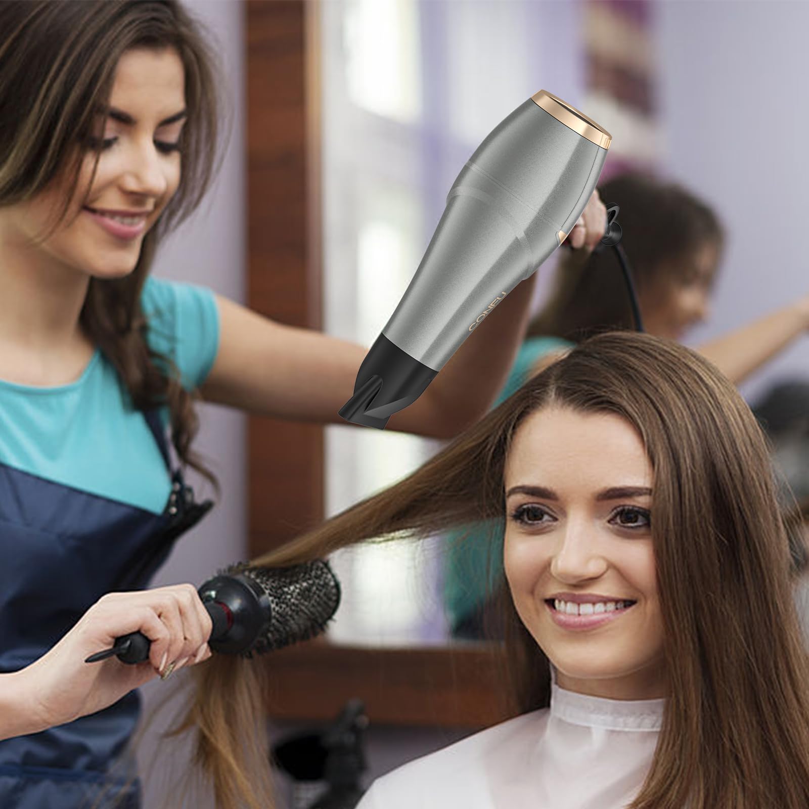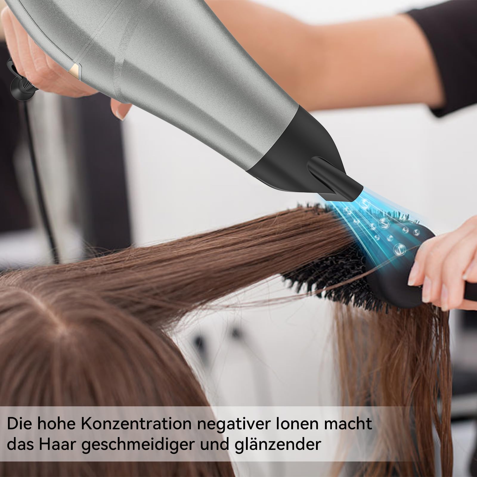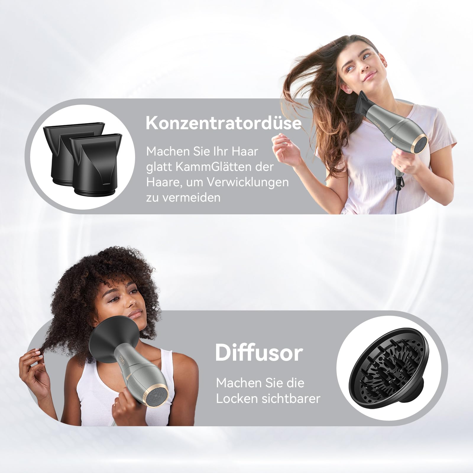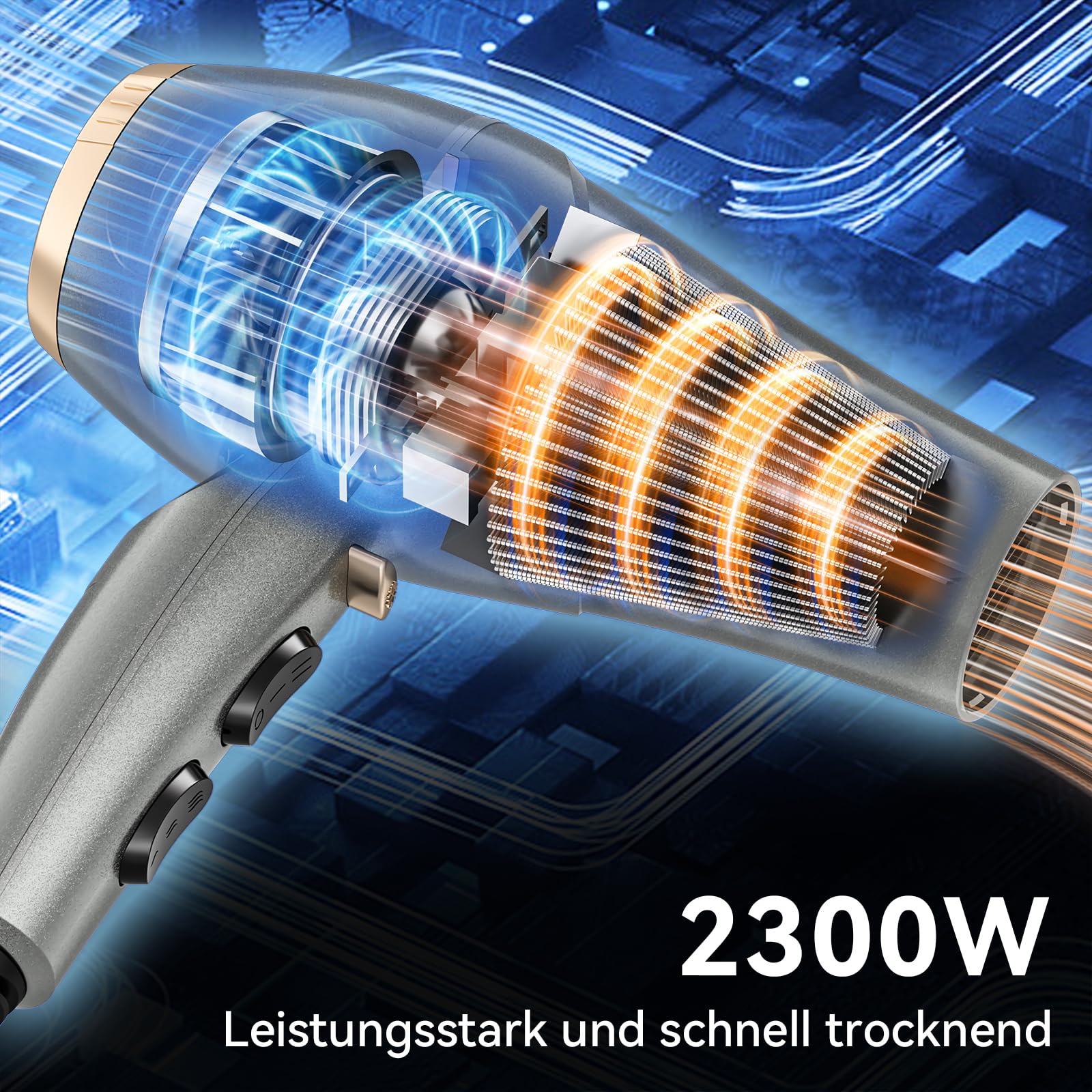 CONFU 2300W Profi Föhn Ionen Technologie Salon Fön Haartrockner mit Diffusor StylingDüse, 2 Geschwindigkeit und 3 Heizstufen (Grau)