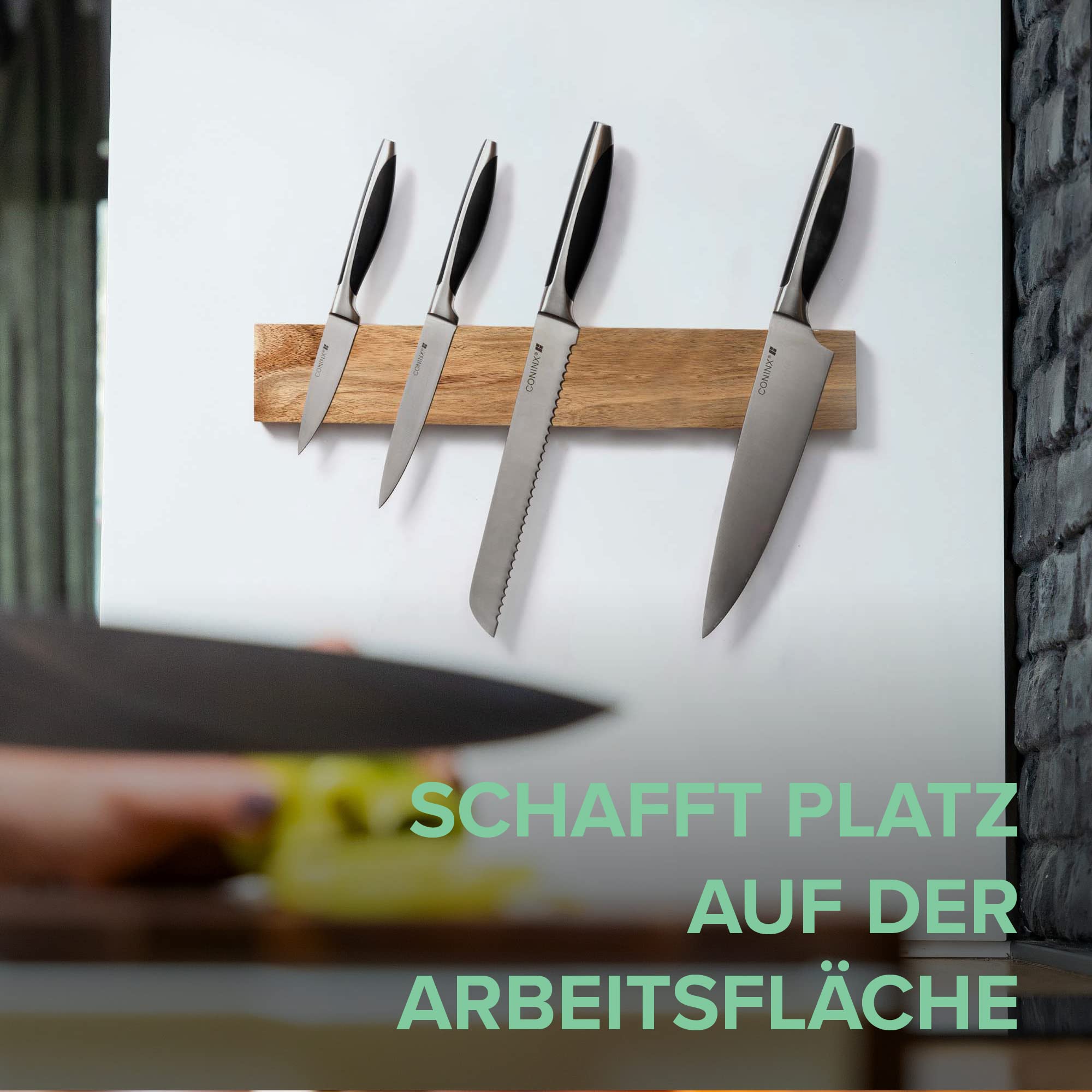 Coninx Magnetleiste Messer Holz 40cm | Küchenmesser Messerhalter Magnetisch mit extra starkem Magnet | Magnetstreifen Wandmontage | Magnetischer Messerblock aus Akazienholz
