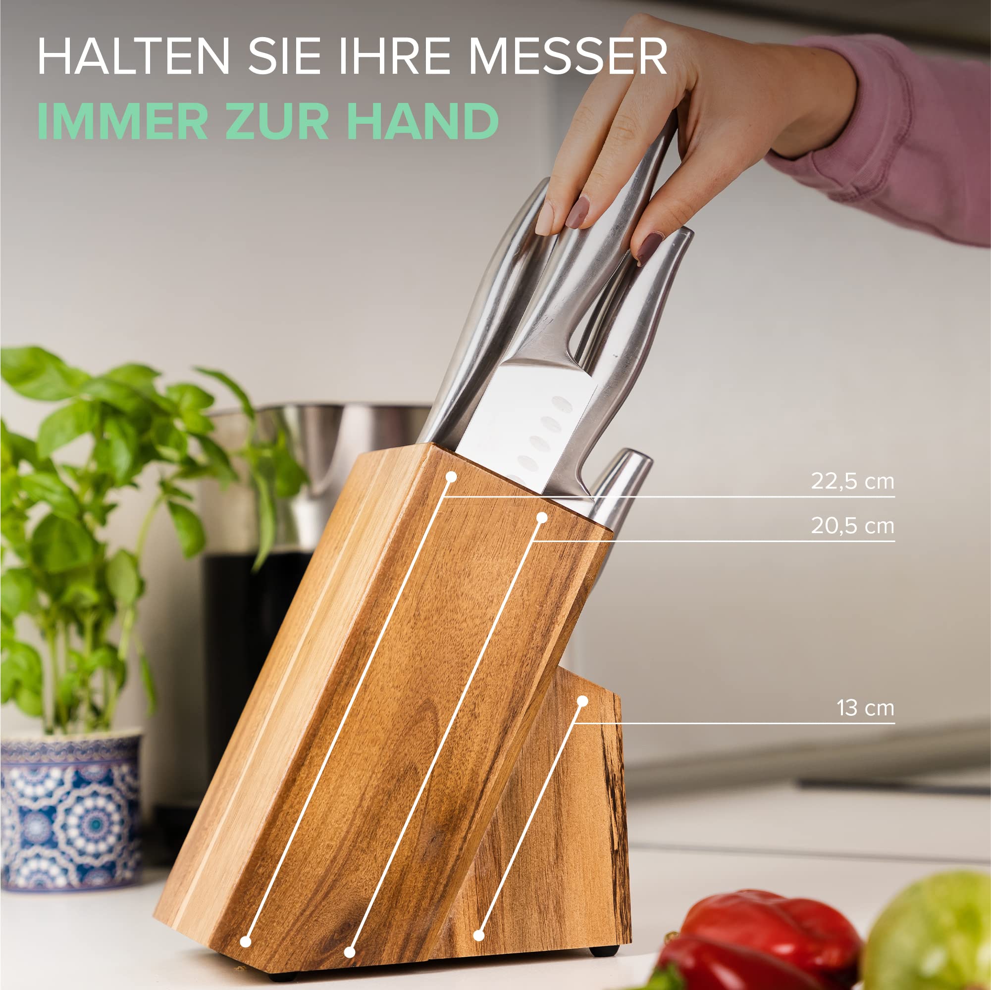 Coninx Messerblock Akazienholz | Messerhalter 15 Schlitze Kochmesser | Messerblock Holz Ohne Messer | Geeignet für 15 Messer, Wetzstahl | Messerhalter für Küchenmessern | 13 x 19 x 22 cm