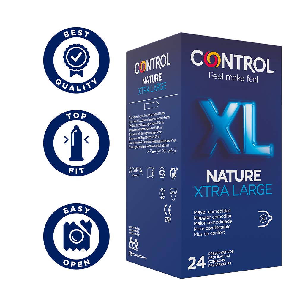 • Kontrollset bestehend aus 1 Packung mit 24 Stück Nature XL-Kondomen und 1 Packung Finissimo XL-Kondome für diejenigen, die mit halben Grössen nicht vertraut sind