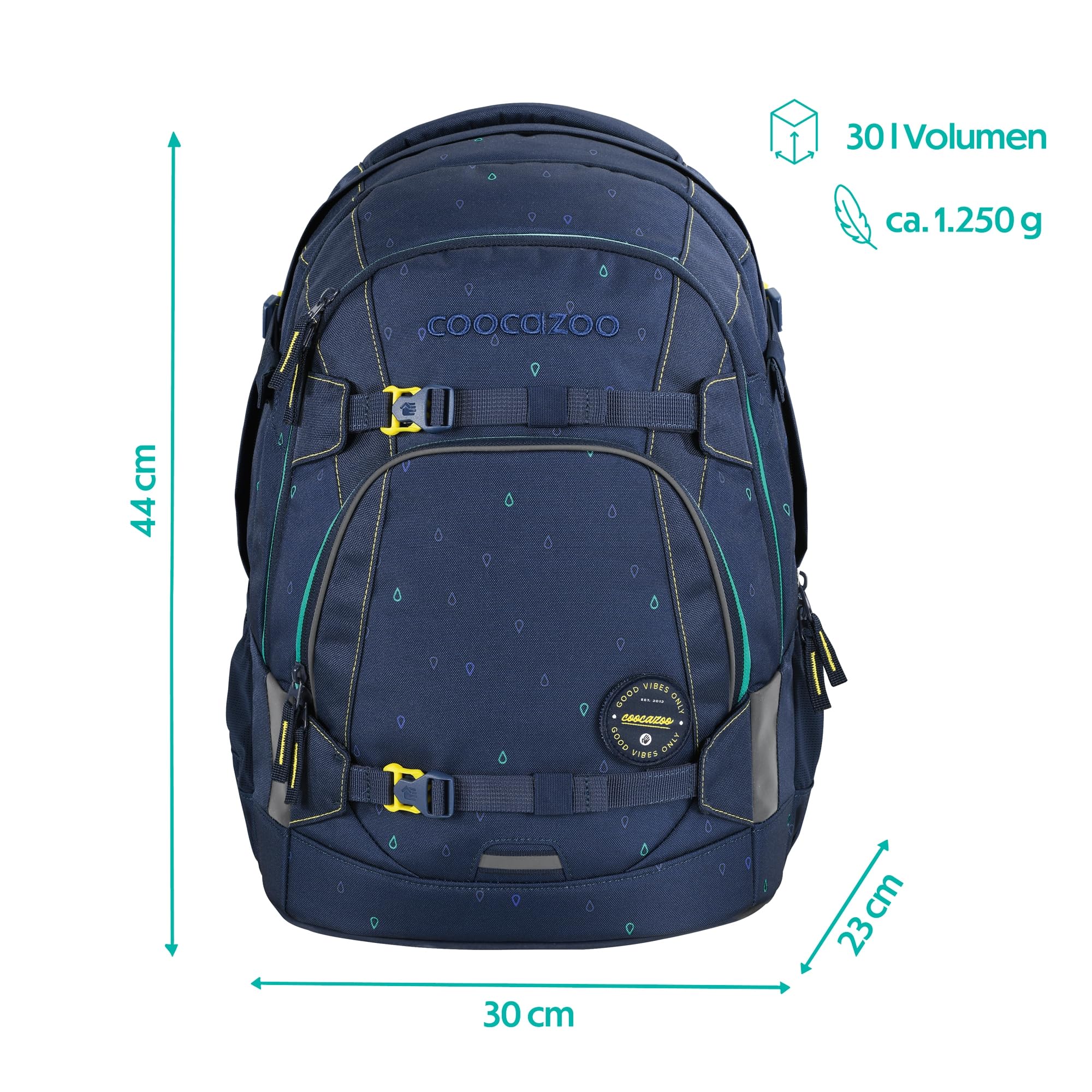 Der ideale Begleiter für alle Grundschüler und alle Teenager in der weiterführenden Schule ist mit Klett-Patches und Anhängern individualisierbar. Der MATE kommt mit einem Gratis-Patch zu euch nach Hause. Unsere separat erhältlichen COLOUR UP-Sets geben dir die Möglichkeit, den Schulrucksack deines Kindes noch einzigartiger zu gestalten. Ergonomischer Tragekomfort: Mit dem EASY GROW SYSTEM lässt er sich schnell und einfach auf die aktuelle Rückenlänge deines Kindes einstellen. Ein einfacher Drehmechanismus mit entsprechender Skala ermöglicht die Höhenverstellung der Schulterträger. Das Gewicht lässt sich durch die Riemen auf Schulterhöhe und Kompressionsriemen an der Seite nah am Rücken verteilen.Der MATE bietet viel Stauraum für Bücher, Hefte und alltägliche Dinge. Genug Platz für dein Kind garantieren vier verschiedene Fächer. Das integrierte Bücherfach ist nah am Rücken platziert. So wird die Last optimal verteilt. In der geräumigen Fronttasche ist Platz für Snack Box & Co., die beiden Seitenfächer sind perfekt für Trinkflasche und Regenschirm geeignet. Zusätzlich ist die Vorderseite mit Gurtbändern ausgestattet, die Jacke, Helm oder Skateboard sicher verstauen. Diese Features – kombiniert mit 30 Litern Stauraum und nur 1.250 Gramm Gewicht (ohne abnehmbare Elemente, Gesamtgewicht 1.350g) – machen den MATE zum grossartigen Multitalent.Die vorhandenen Leuchtstreifen und reflektierende Flächen sorgen für mehr Sichtbarkeit im Strassenverkehr. Zusätzlich kann dein Kind am Schulrucksack ein weiteres LED-Stecklicht befestigen.Ein weiterer Pluspunkt: der Schulrucksack ist klimaneutral ausgeglichen sowie sozial verträglich (unsere Partner: amfori, humedica) und verantwortungsvoll produziert (bluesign-Systempartner). Die coocazoo Modelle MATE, PORTER, JOKER sind mit dem AGR-Gütesiegel (Aktion Gesunder Rücken e.V.) ausgezeichnet.Hochwertig, praktisch und langlebig: Das ist der Schulrucksack MATE von coocazoo!