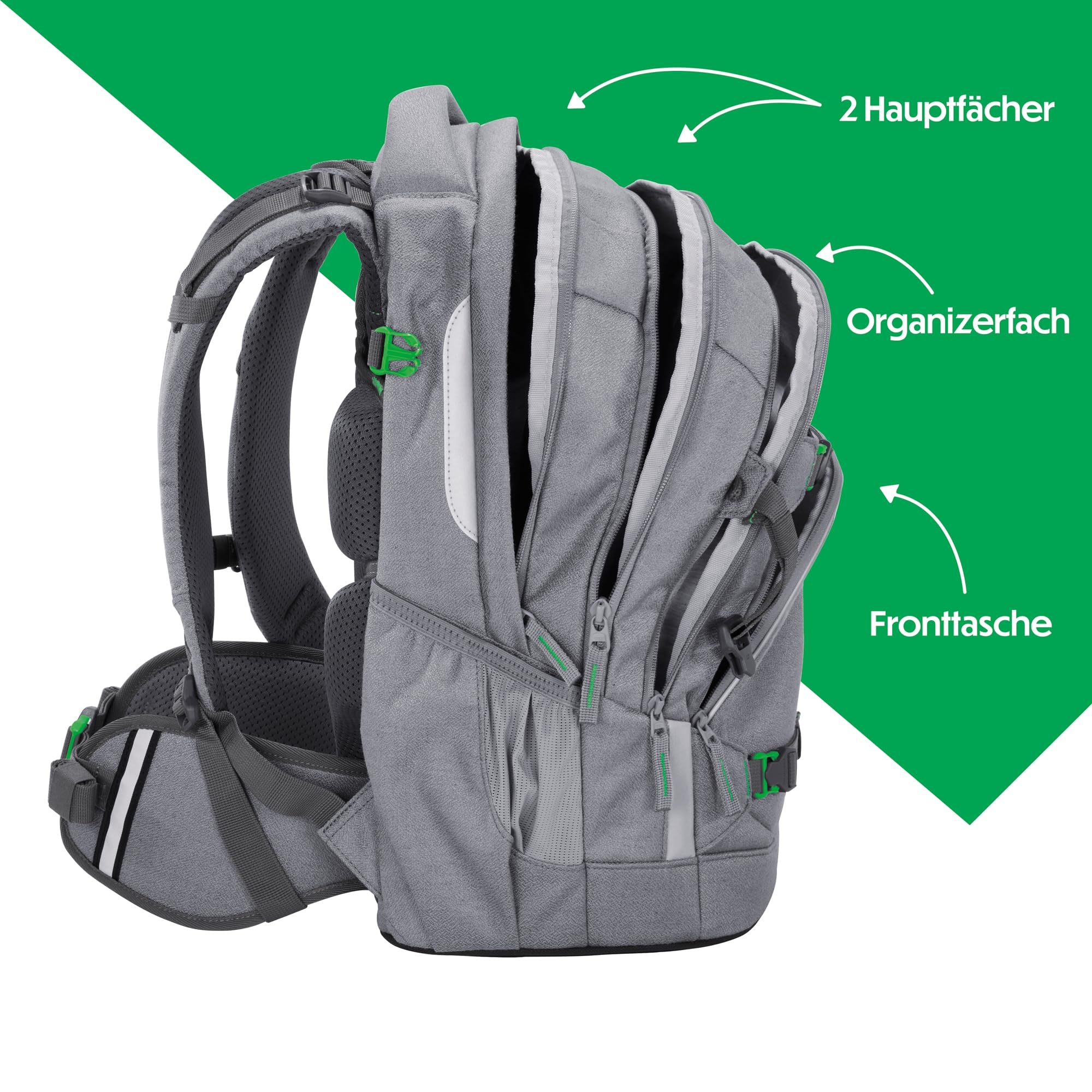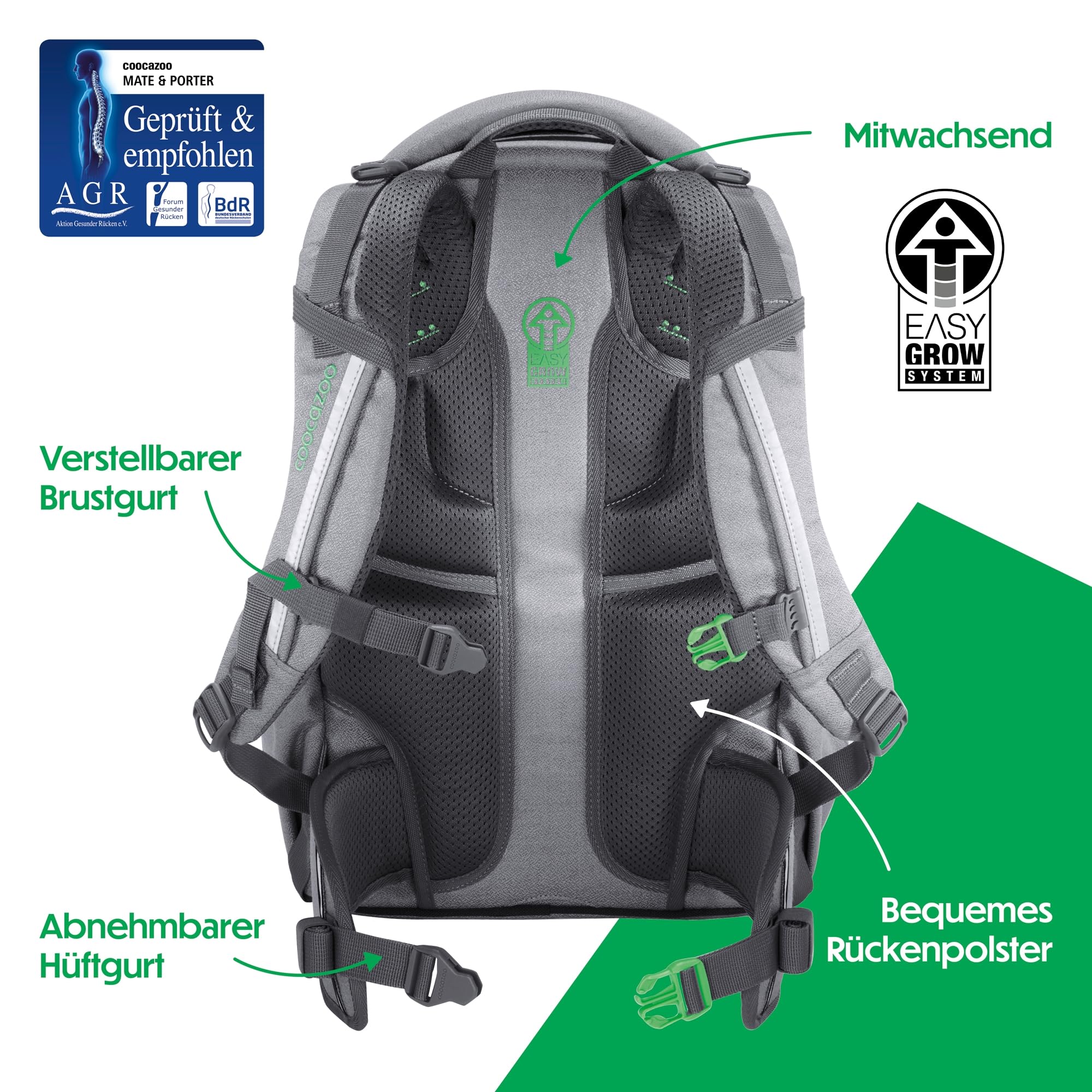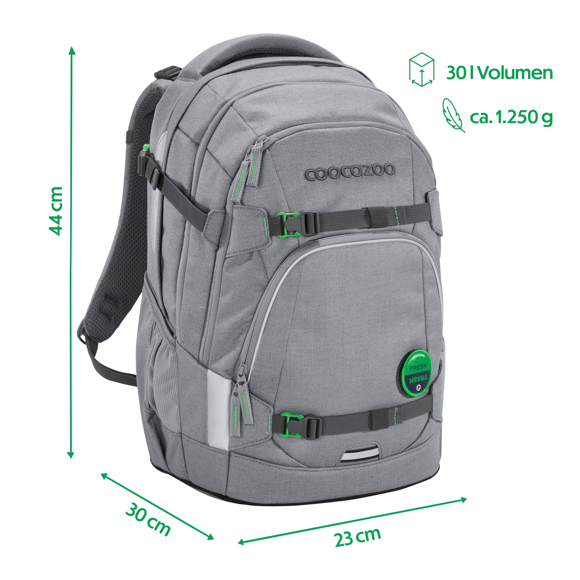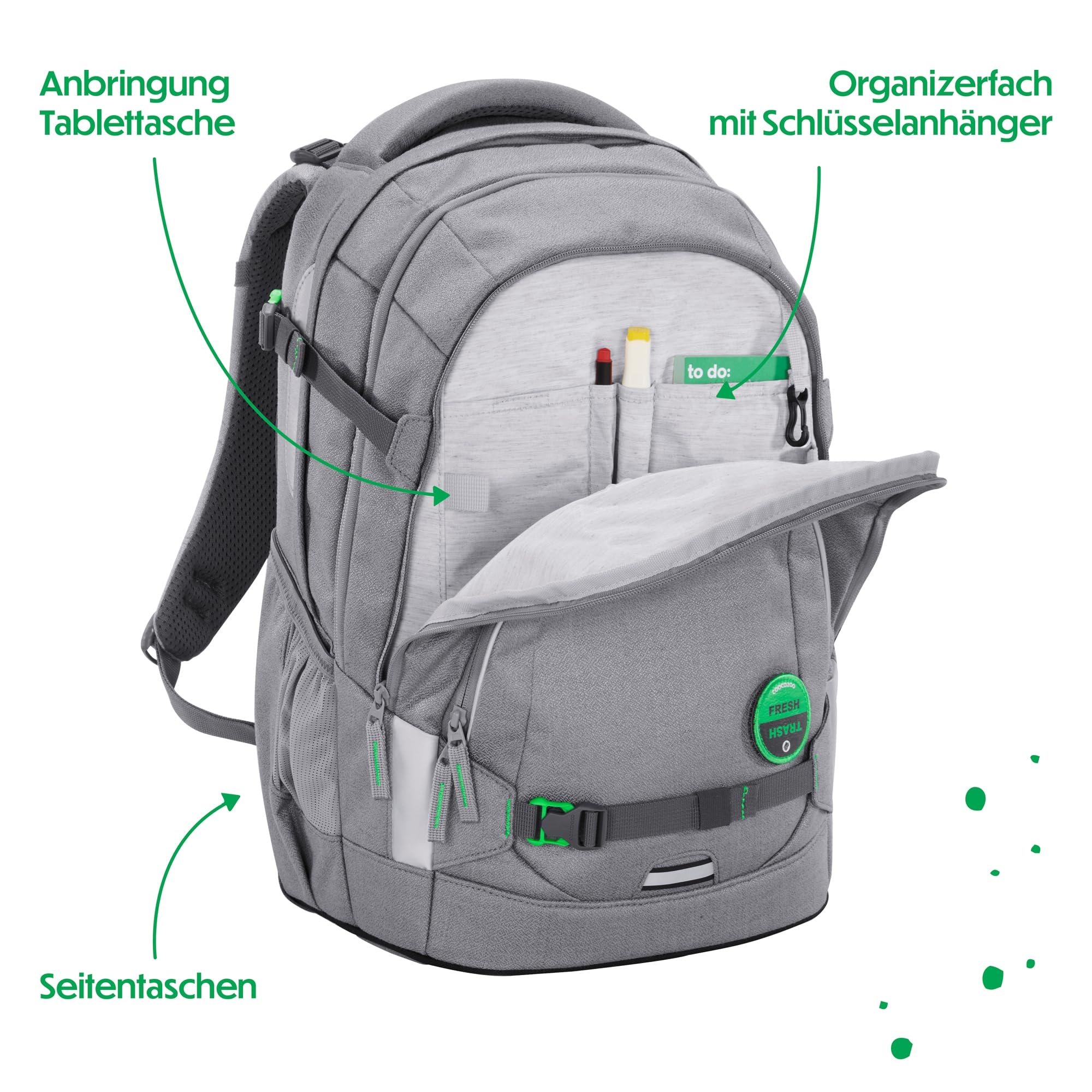Nachhaltigkeit in jeder Faser: Limited Edition „Mixed“Die Limited Edition „Mixed“ des MATE Schulrucksacks setzt auf textile Innovation und Umweltbewusstsein. Das Material wird durch mechanisches Recycling gewonnen, bei dem alte Textilien zu neuen Fasern verarbeitet werden. Das schont Ressourcen und sorgt für eine umweltfreundliche Herstellung. Der Schulrucksack ist nicht nur stylisch, sondern auch nachhaltig, robust und langlebig.Individuelle Styles für den SchulrucksackDer MATE Schulrucksack ist ideal für Grundschüler und Teenager. Er ist mit Klett-Patches und Anhängern individualisierbar. Die zusätzlich erhältlichen COLOUR UP-Style-Sets in verschiedenen Motiven, Materialien und Farben sorgen für einen coolen Look.Ergonomischer Tragekomfort dank EASY GROW SYSTEMDer MATE Schulrucksack bietet perfekte Ergonomie und lässt sich durch das EASY GROW SYSTEM auf die aktuelle Rückenlänge einstellen. Ein Drehmechanismus ermöglicht die Höhenverstellung der Schulterträger, und Kompressionsriemen verteilen das Gewicht nah am Rücken.Stauraum trifft auf SicherheitDer MATE bietet viel Stauraum mit vier Fächern, einer geräumigen Fronttasche und zwei Seitenfächern. Gurtbänder an der Vorderseite sichern Jacke, Helm oder Skateboard. Reflektierende Flächen und die Möglichkeit, ein LED-Stecklicht zu befestigen, sorgen für mehr Sicherheit im Strassenverkehr.Der MATE Schulrucksack wird ohne PFC und PVC produziert. Praktisch, hochwertig und langlebig – das ist der MATE von coocazoo!