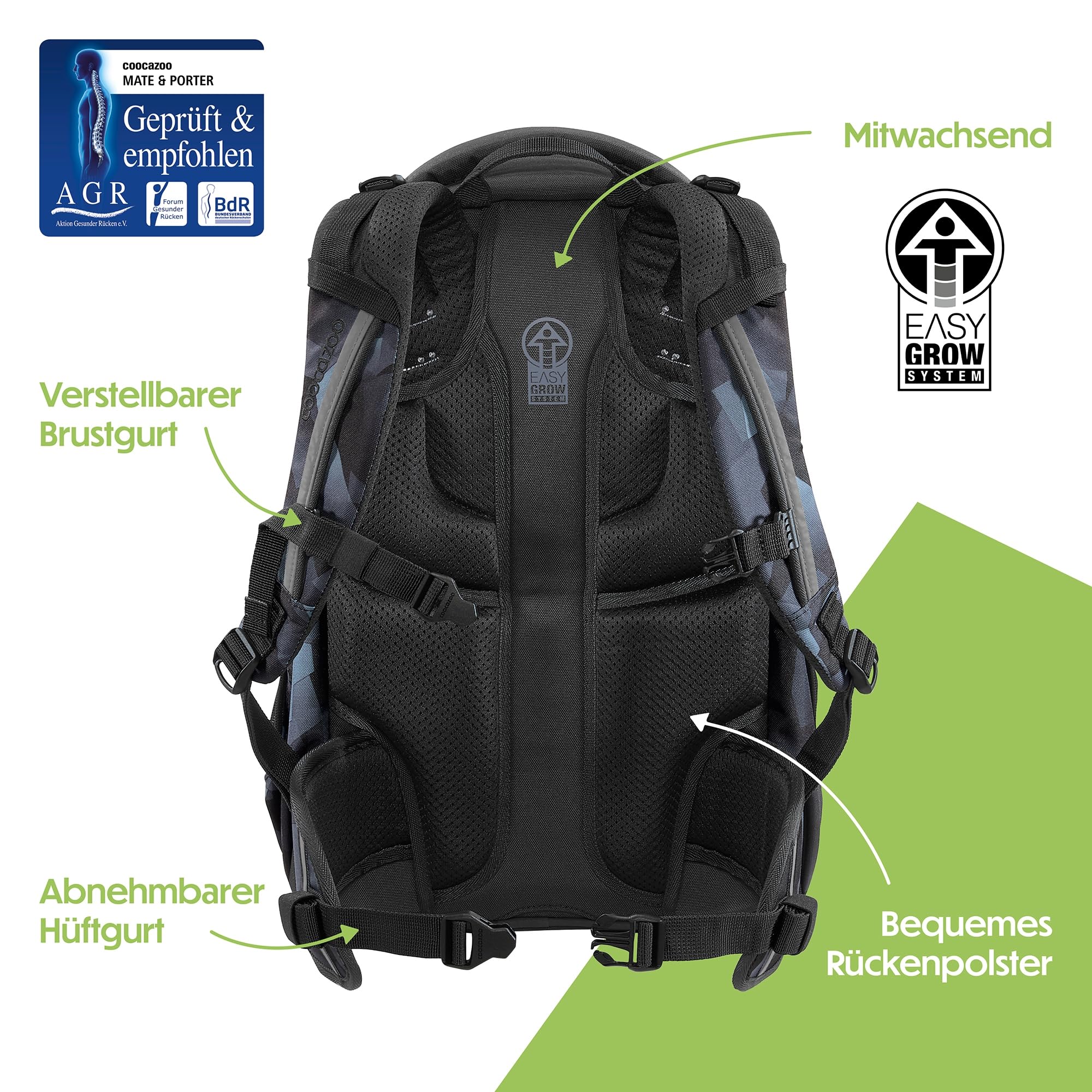 coocazoo Schulrucksack Mate, ergonomischer & anpassbarer Tornister, höhen- & grössenverstellbar, mit Brustgurt & Hüftgurt, leicht & individuell, ab der 3. Klasse