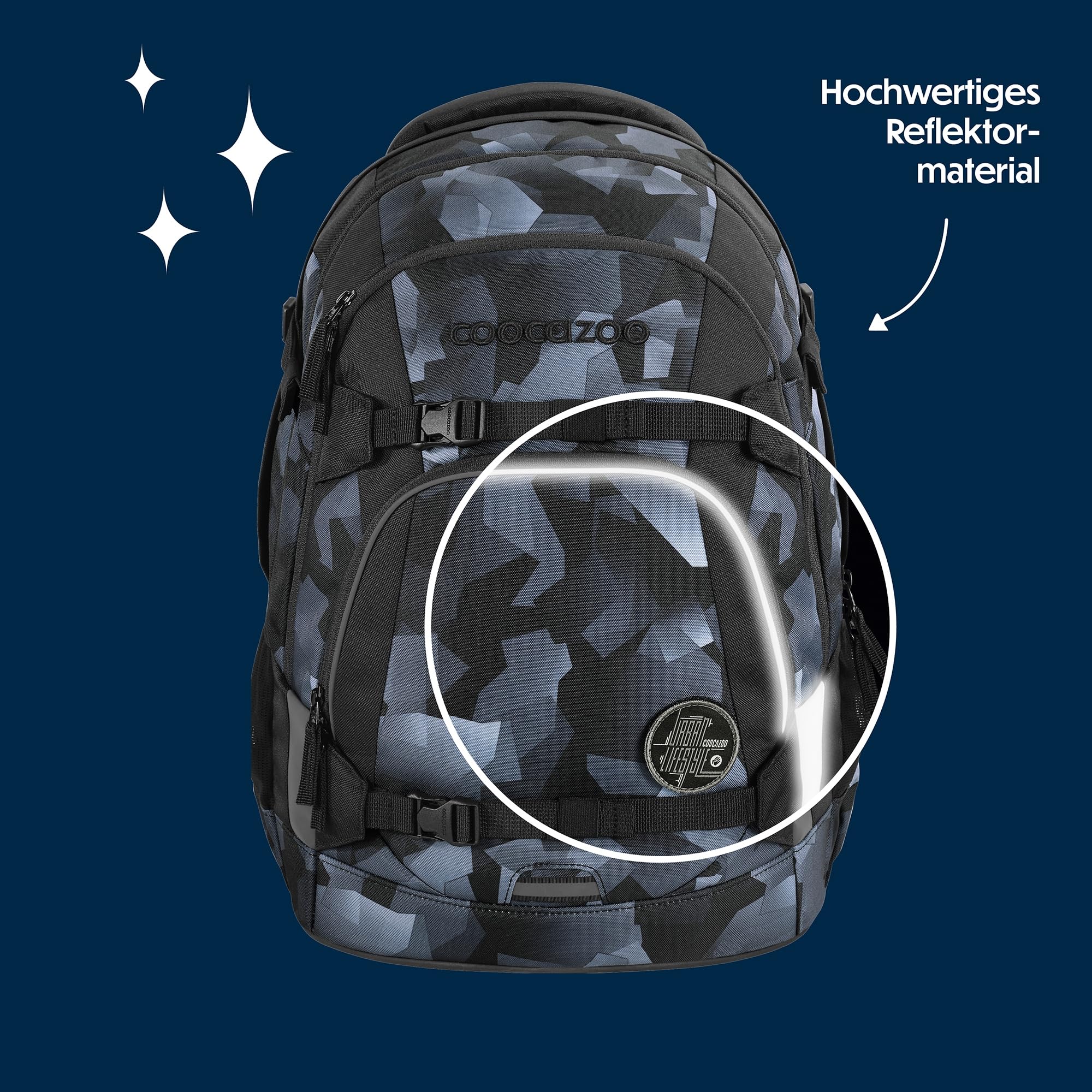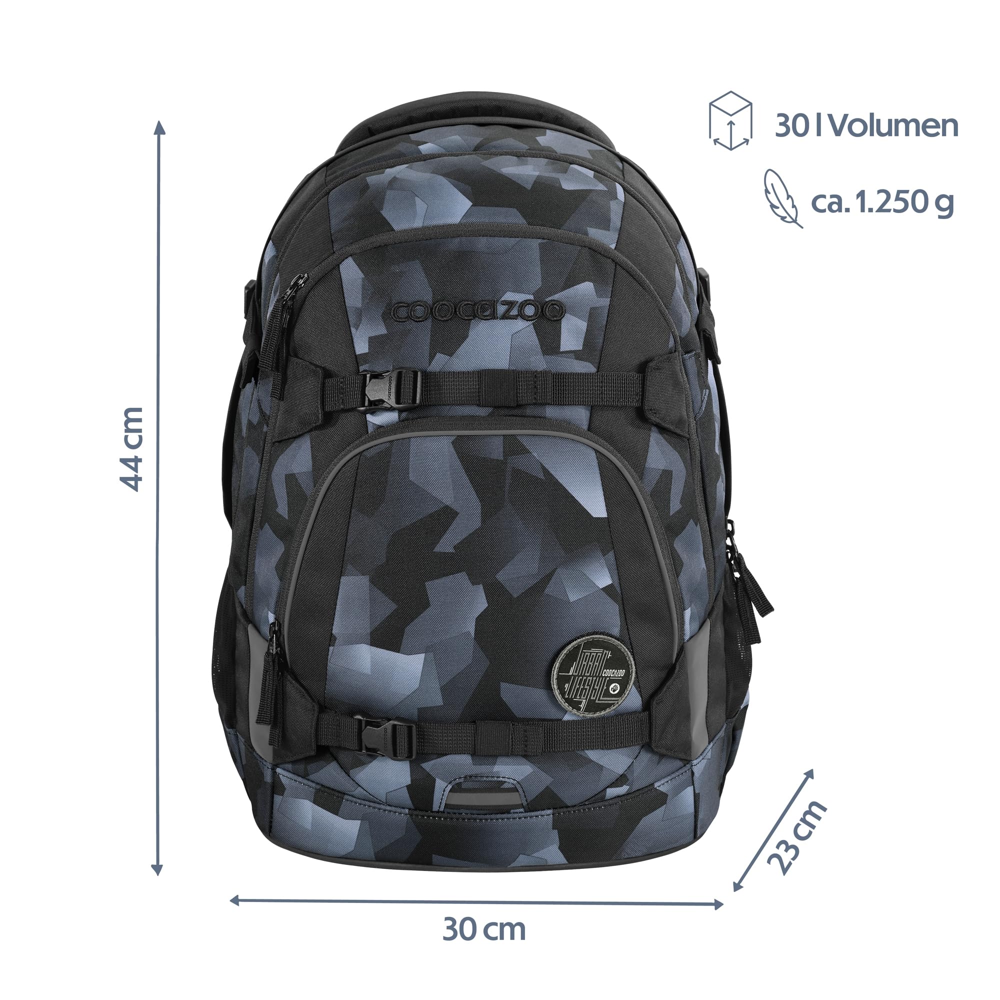 Der ideale Begleiter für alle Grundschüler und alle Teenager in der weiterführenden Schule ist mit Klett-Patches und Anhängern individualisierbar. Der MATE kommt mit einem Gratis-Patch zu euch nach Hause. Unsere separat erhältlichen COLOUR UP-Sets geben dir die Möglichkeit, den Schulrucksack deines Kindes noch einzigartiger zu gestalten. Ergonomischer Tragekomfort: Mit dem EASY GROW SYSTEM lässt er sich schnell und einfach auf die aktuelle Rückenlänge deines Kindes einstellen. Ein einfacher Drehmechanismus mit entsprechender Skala ermöglicht die Höhenverstellung der Schulterträger. Das Gewicht lässt sich durch die Riemen auf Schulterhöhe und Kompressionsriemen an der Seite nah am Rücken verteilen.Der MATE bietet viel Stauraum für Bücher, Hefte und alltägliche Dinge. Genug Platz für dein Kind garantieren vier verschiedene Fächer. Das integrierte Bücherfach ist nah am Rücken platziert. So wird die Last optimal verteilt. In der geräumigen Fronttasche ist Platz für Snack Box & Co., die beiden Seitenfächer sind perfekt für Trinkflasche und Regenschirm geeignet. Zusätzlich ist die Vorderseite mit Gurtbändern ausgestattet, die Jacke, Helm oder Skateboard sicher verstauen. Diese Features – kombiniert mit 30 Litern Stauraum und nur 1.250 Gramm Gewicht (ohne abnehmbare Elemente, Gesamtgewicht 1.350g) – machen den MATE zum grossartigen Multitalent.Die vorhandenen Leuchtstreifen und reflektierende Flächen sorgen für mehr Sichtbarkeit im Strassenverkehr. Zusätzlich kann dein Kind am Schulrucksack ein weiteres LED-Stecklicht befestigen.Ein weiterer Pluspunkt: der Schulrucksack ist klimaneutral ausgeglichen sowie sozial verträglich (unsere Partner: amfori, humedica) und verantwortungsvoll produziert (bluesign-Systempartner). Die coocazoo Modelle MATE, PORTER, JOKER sind mit dem AGR-Gütesiegel (Aktion Gesunder Rücken e.V.) ausgezeichnet.Hochwertig, praktisch und langlebig: Das ist der Schulrucksack MATE von coocazoo!