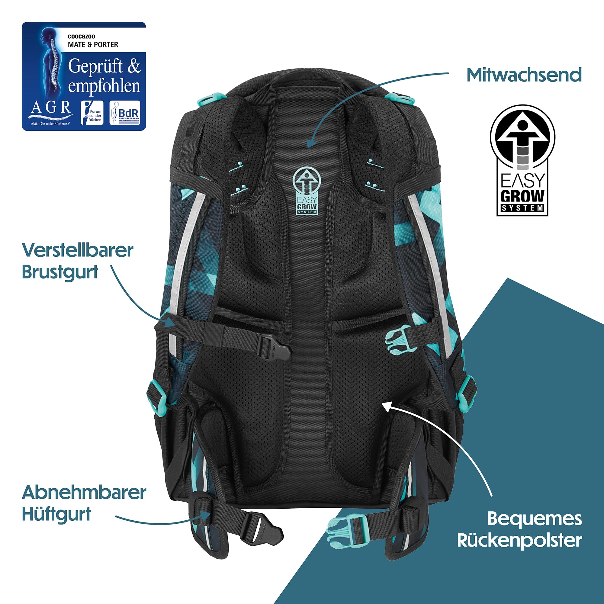coocazoo Schulrucksack Mate, ergonomischer & anpassbarer Tornister, höhen- & grössenverstellbar, mit Brustgurt & Hüftgurt, leicht & individuell, ab der 3. Klasse