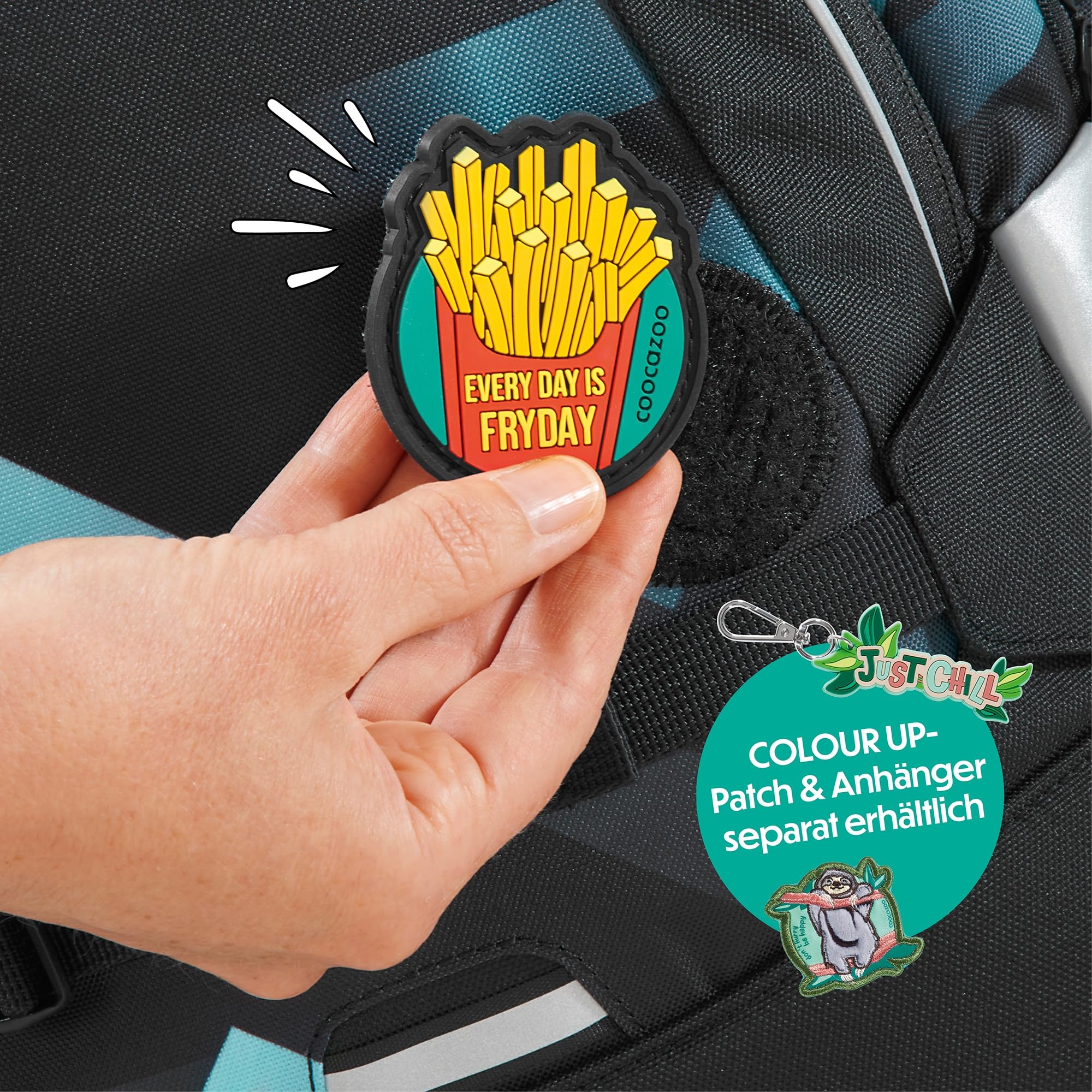 Der ideale Begleiter für alle Grundschüler und alle Teenager in der weiterführenden Schule ist mit Klett-Patches und Anhängern individualisierbar. Der MATE kommt mit einem Gratis-Patch zu euch nach Hause. Unsere separat erhältlichen COLOUR UP-Sets geben dir die Möglichkeit, den Schulrucksack deines Kindes noch einzigartiger zu gestalten. Ergonomischer Tragekomfort: Mit dem EASY GROW SYSTEM lässt er sich schnell und einfach auf die aktuelle Rückenlänge deines Kindes einstellen. Ein einfacher Drehmechanismus mit entsprechender Skala ermöglicht die Höhenverstellung der Schulterträger. Das Gewicht lässt sich durch die Riemen auf Schulterhöhe und Kompressionsriemen an der Seite nah am Rücken verteilen.Der MATE bietet viel Stauraum für Bücher, Hefte und alltägliche Dinge. Genug Platz für dein Kind garantieren vier verschiedene Fächer. Das integrierte Bücherfach ist nah am Rücken platziert. So wird die Last optimal verteilt. In der geräumigen Fronttasche ist Platz für Snack Box & Co., die beiden Seitenfächer sind perfekt für Trinkflasche und Regenschirm geeignet. Zusätzlich ist die Vorderseite mit Gurtbändern ausgestattet, die Jacke, Helm oder Skateboard sicher verstauen. Diese Features – kombiniert mit 30 Litern Stauraum und nur 1.250 Gramm Gewicht (ohne abnehmbare Elemente, Gesamtgewicht 1.350g) – machen den MATE zum grossartigen Multitalent.Die vorhandenen Leuchtstreifen und reflektierende Flächen sorgen für mehr Sichtbarkeit im Strassenverkehr. Zusätzlich kann dein Kind am Schulrucksack ein weiteres LED-Stecklicht befestigen.Ein weiterer Pluspunkt: der Schulrucksack ist klimaneutral ausgeglichen sowie sozial verträglich (unsere Partner: amfori, humedica) und verantwortungsvoll produziert (bluesign-Systempartner). Die coocazoo Modelle MATE, PORTER, JOKER sind mit dem AGR-Gütesiegel (Aktion Gesunder Rücken e.V.) ausgezeichnet.Hochwertig, praktisch und langlebig: Das ist der Schulrucksack MATE von coocazoo!