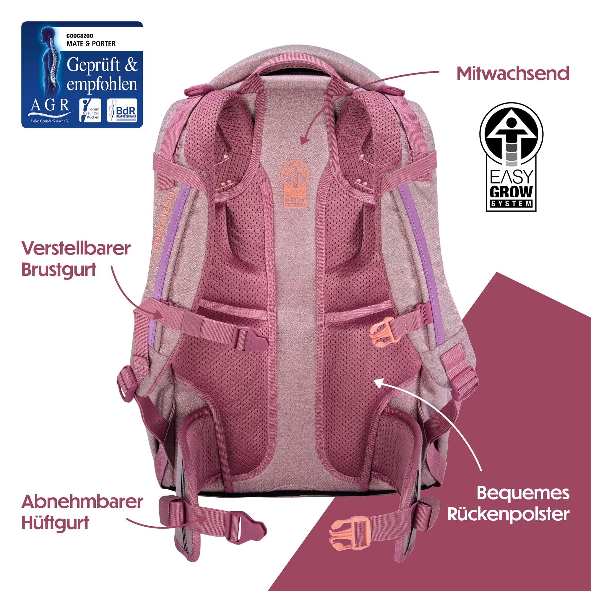 coocazoo Schulrucksack Mate, ergonomischer & anpassbarer Tornister, höhen- & grössenverstellbar, mit Brustgurt & Hüftgurt, leicht & individuell, ab der 3. Klasse