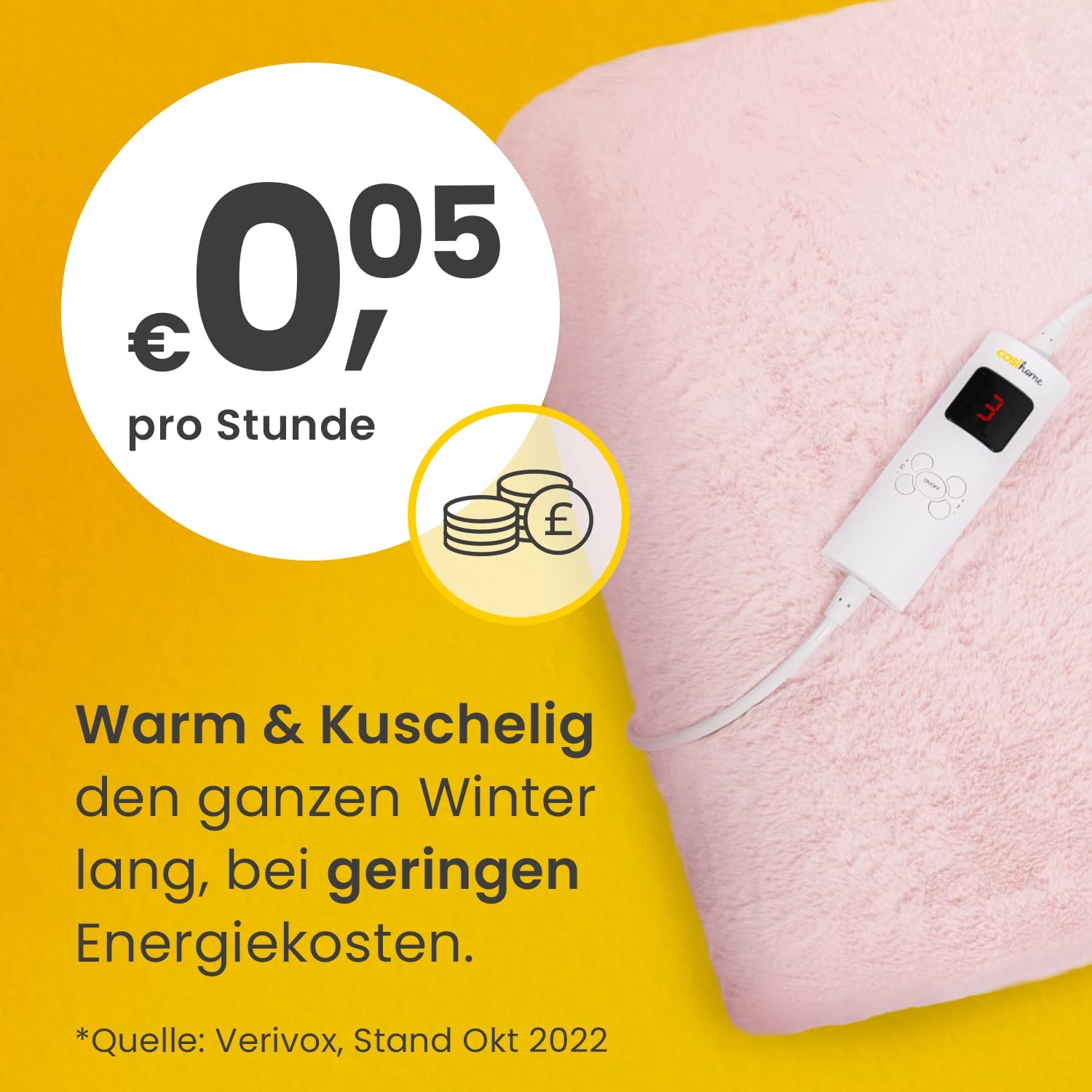 Cosi Home Luxus Heizdecke mit Abschaltautomatik - Elektrische Wärmedecke mit Überhitzungsschutz, 9 Heizstufen, Waschbar, Fernbedienung - Kuscheldecke flauschig aus Kunstfell, 180x130cm - Rosa