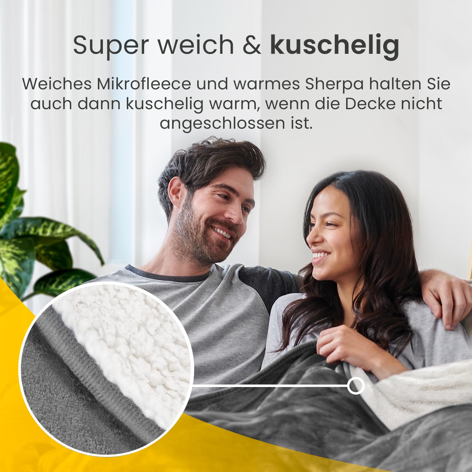 Cosi Home Heizdecke 180x130 cm - Elektrische Wärmedecke mit Abschaltautomatik, Überhitzungsschutz, Waschbar, Kuscheliges Sherpa & Fleece, 10 Heizstufen mit digitaler Fernbedienung - Grau
