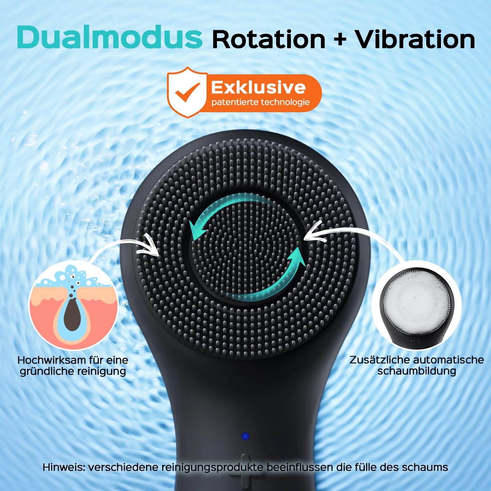 - Unterstuetzt porentiefe Reinigung und Hautmassage