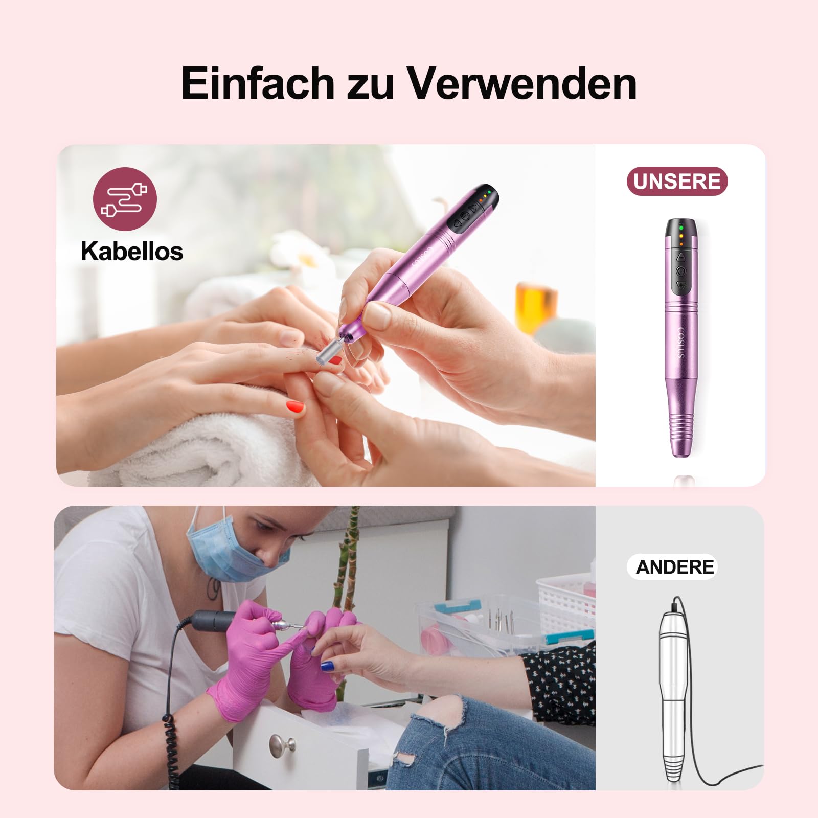 COSLUS kabelloser Nagelfraeser fuer Manikuere und Pedikuere 11 in 1