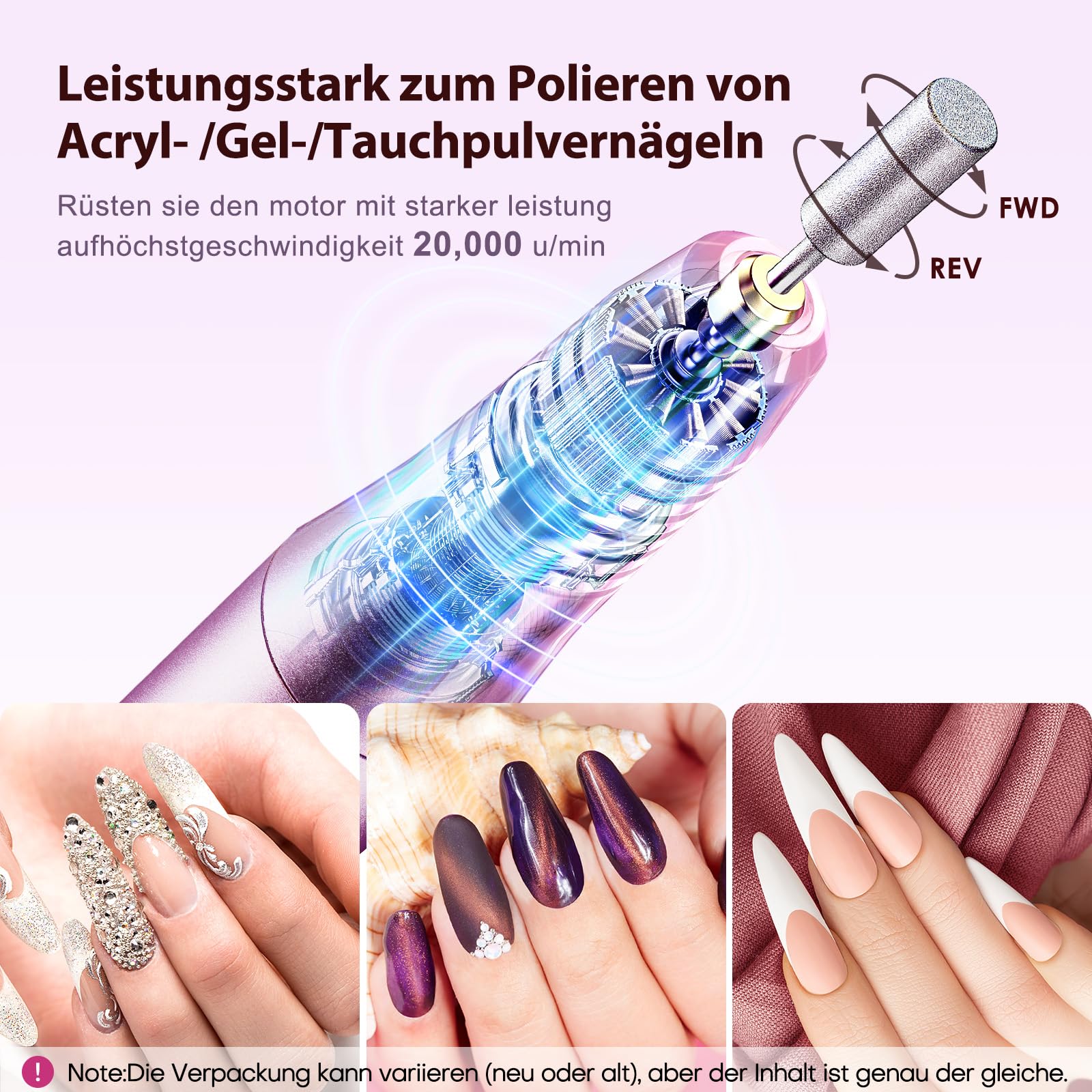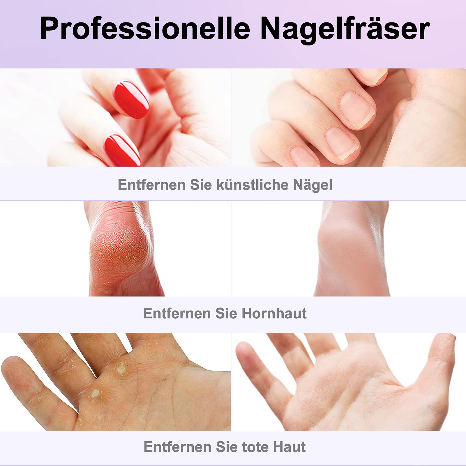 - Funktionen: Formen, Polieren, Feilen, Hornhautentfernung