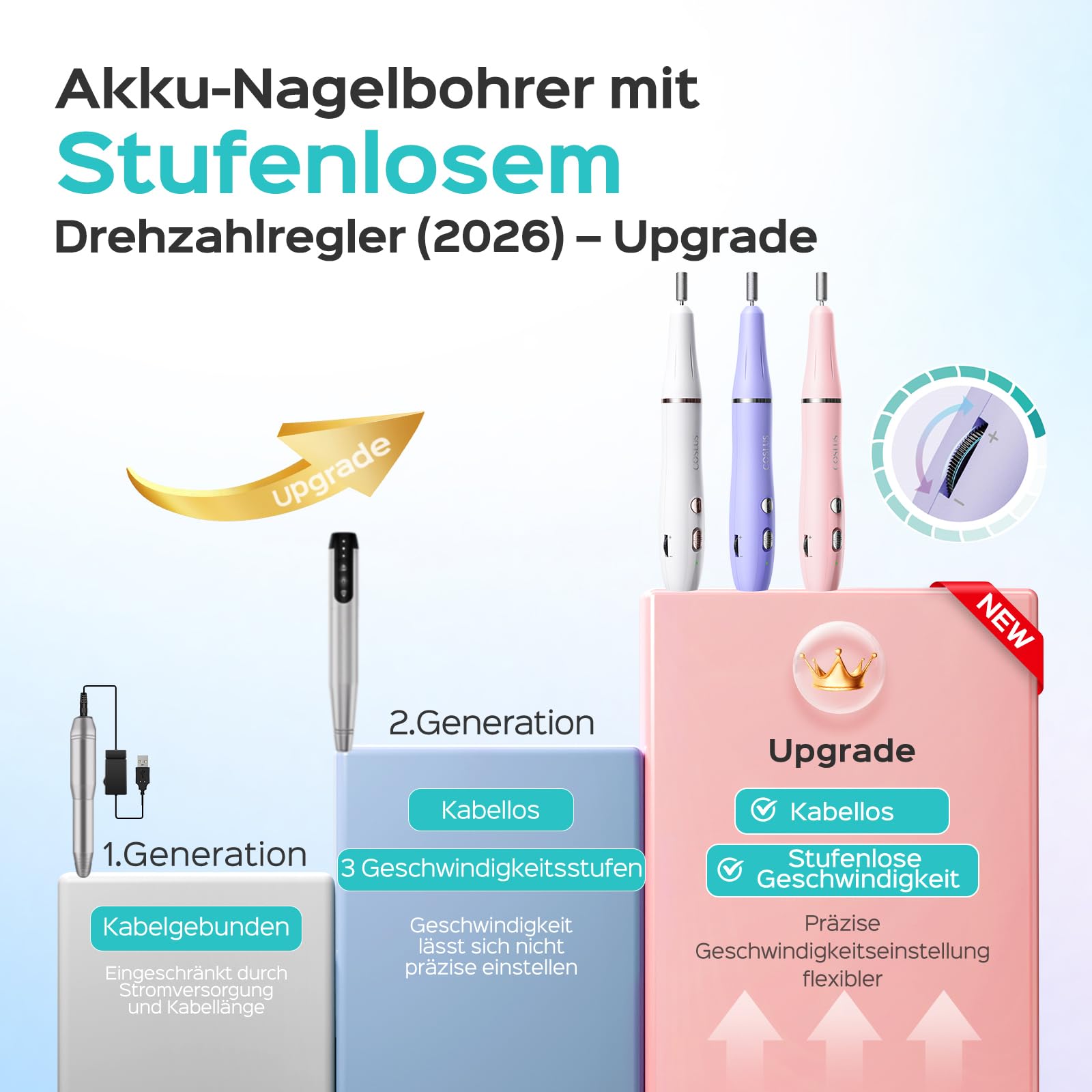 COSLUS Kabelloser Nagelfraeser Elektrische Nagelfeile stufenlose Geschwindigkeit