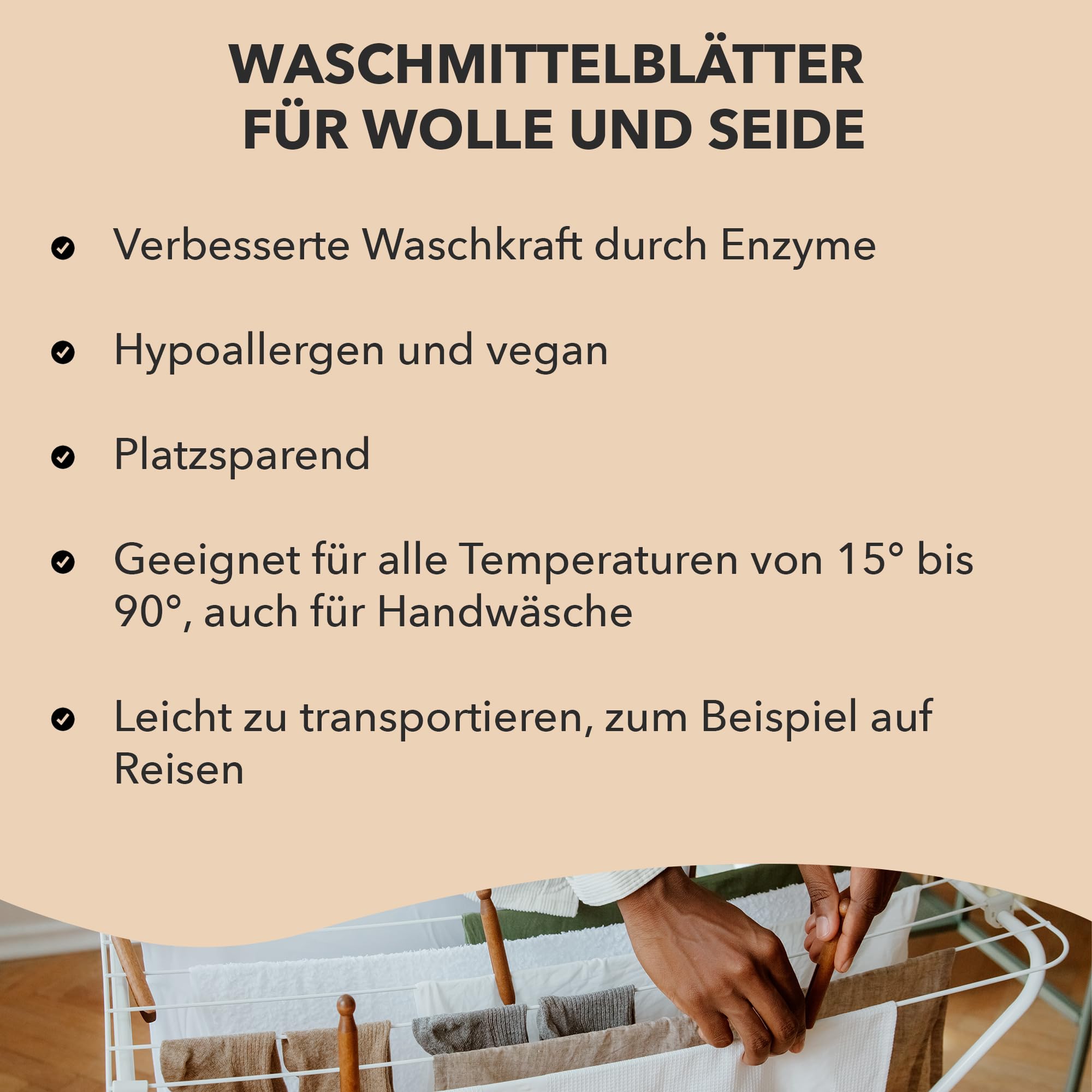 Cosmeau Waschmittel Blätter für Wolle und Seide - Frühlingsfrisch - bis zu 60 Waschgänge (60 Blätter) - Nachhaltige Waschmittelblätter - Plastikfrei & Perfekt als Reisewaschmittel