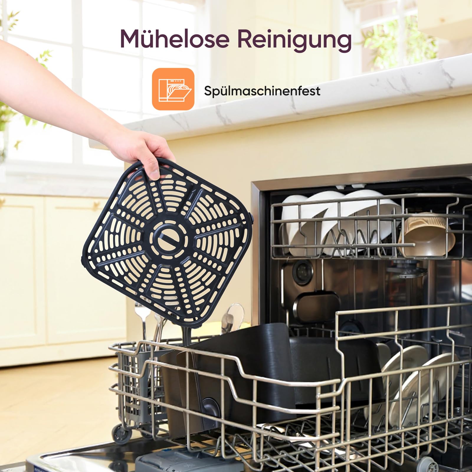 5, 5L grosser Korb, 11 voreingestellten Programmen; Grosses Berührungsempfindliches LED-Display; Vorheizen- & Warmhaltenfunktion; Shake-Erinnerung; mit spülmaschinenfesten Antihaft-Frittierkörben (FDA- und PFOA-frei); mit Rezeptbuch