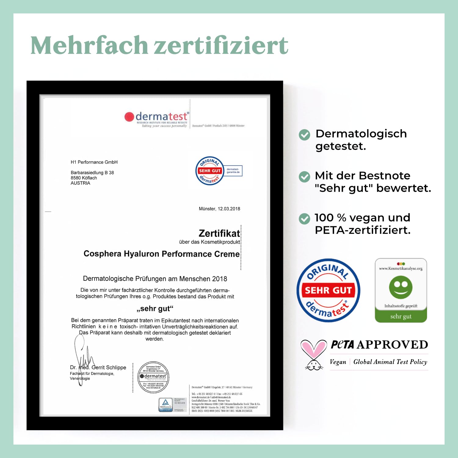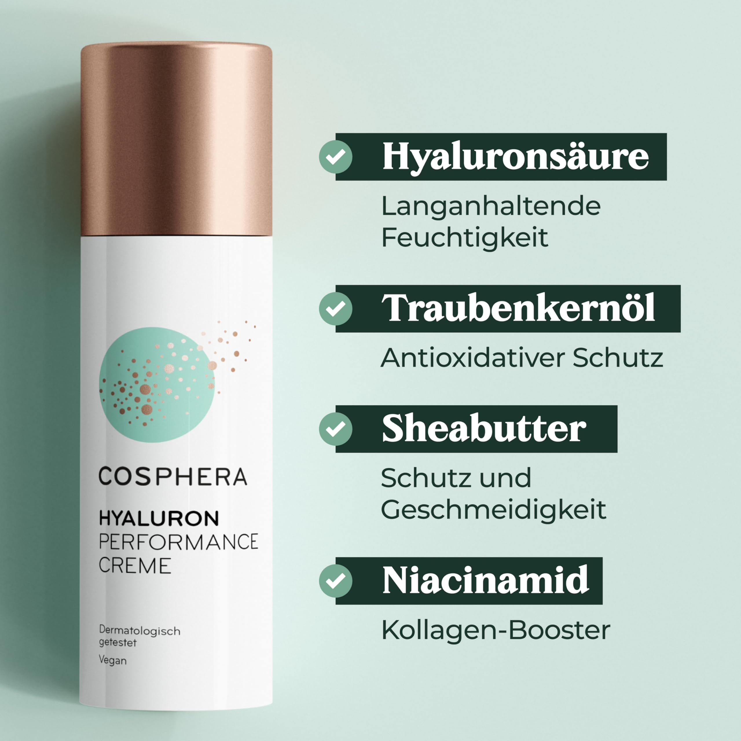 Cosphera Hyaluron Performance Creme (50ml) – Hochdosierte vegane Tages- & Nachtcreme – Anti-Aging Feuchtigkeitspflege für Gesicht, Augen & Dekolleté