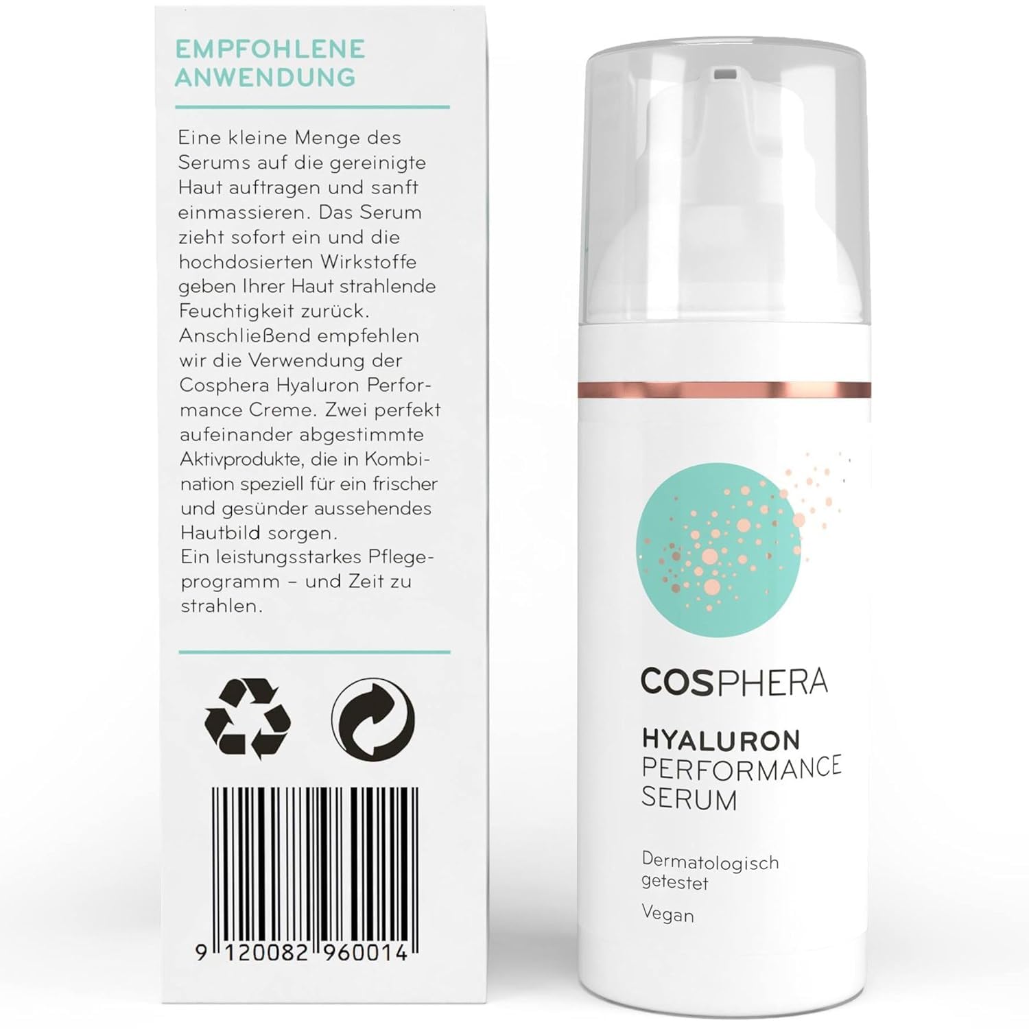 Das Cosphera Hyaluron Serum ist vegan, frei von tierischen Inhaltsstoffen und eignet sich fuer Frauen und Maenner, die Wert auf wirksame, moderne Hautpflege legen.