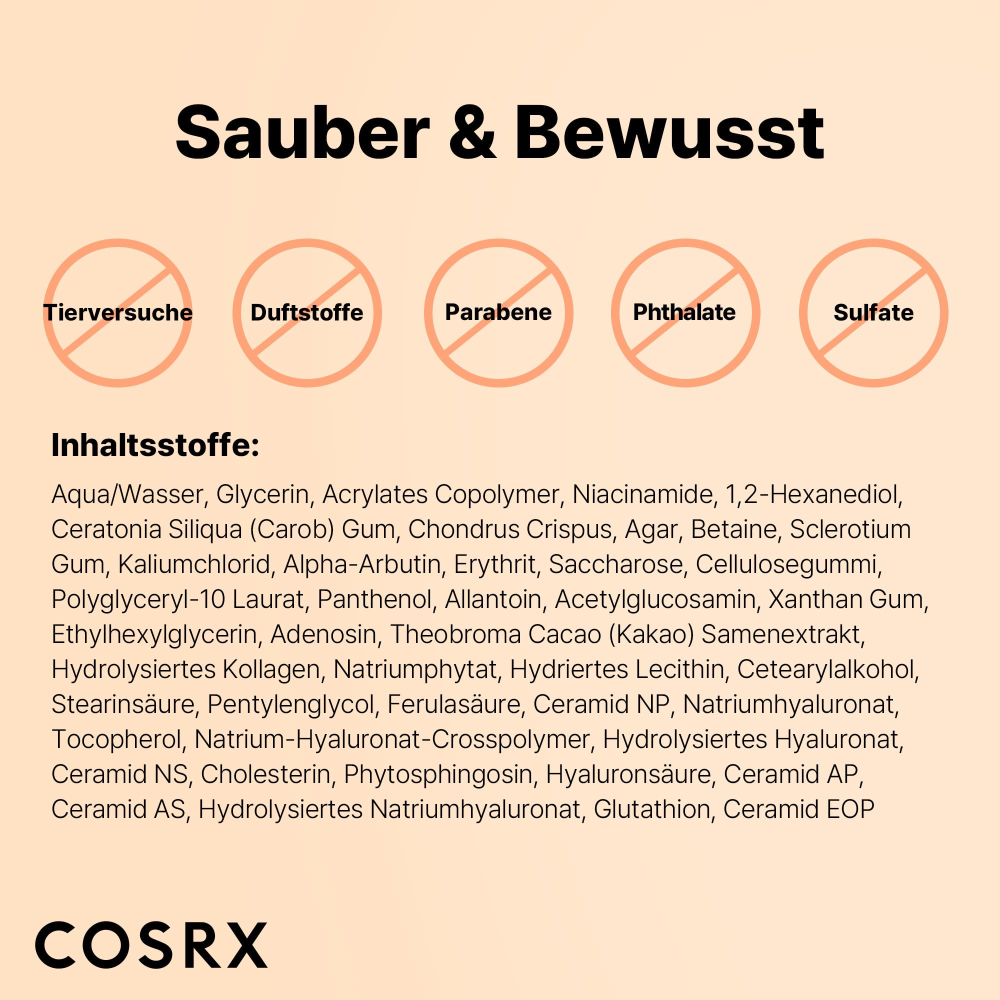 • Wirkstoffe: Alpha-Arbutin, Kollagen, feuchtigkeitsspendende Inhaltsstoffe