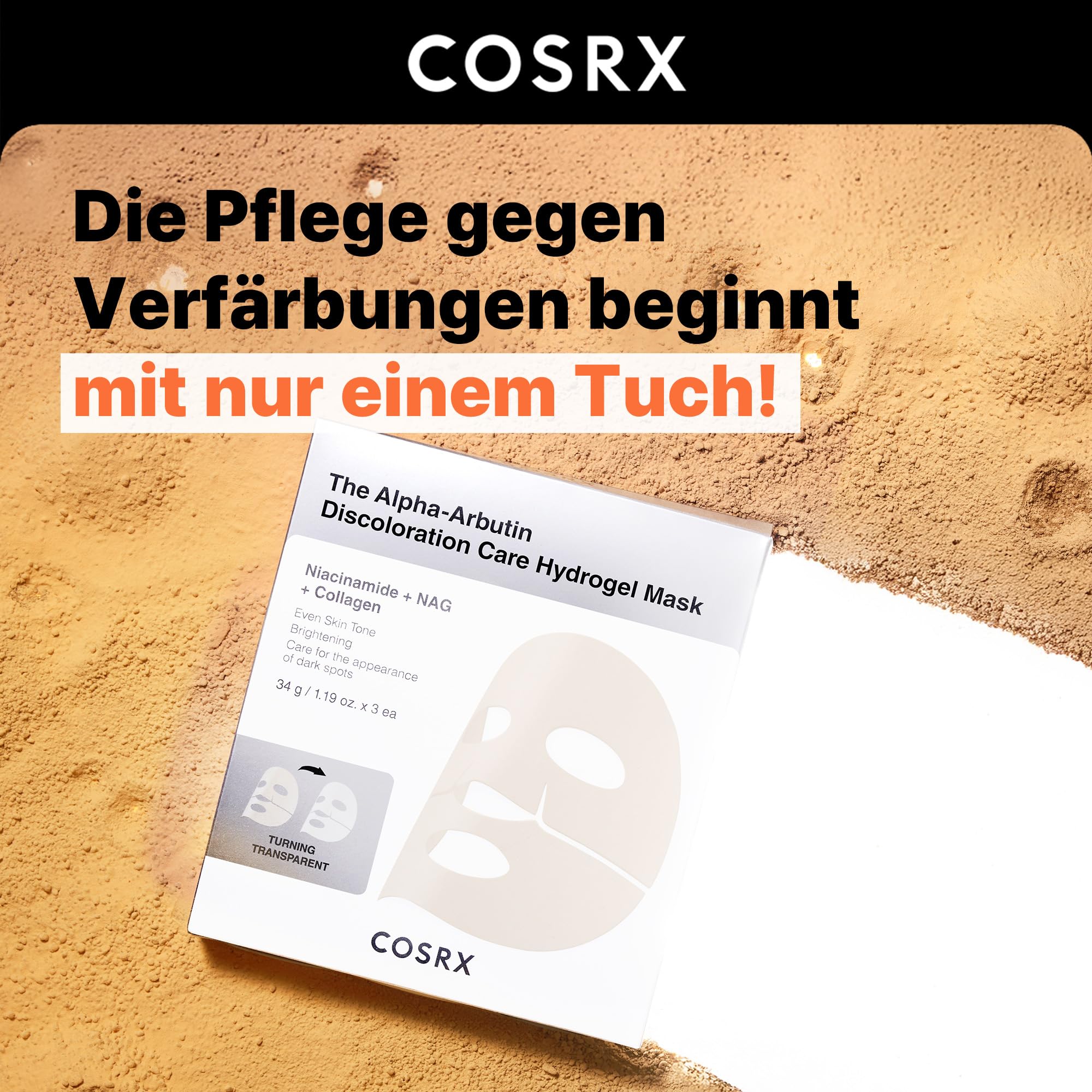 Die COSRX Alpha-Arbutin Discoloration Care Hydrogel Gesichtsmaske wurde speziell entwickelt, um Pigmentflecken, dunkle Stellen und einen ungleichmaessigen Hautton gezielt zu pflegen. Die innovative Hydrogel-Textur legt sich passgenau auf das Gesicht und sorgt dafuer, dass die Wirkstoffe optimal in die Haut abgegeben werden – ideal als Overnight Maske oder intensive Pflegebehandlung.