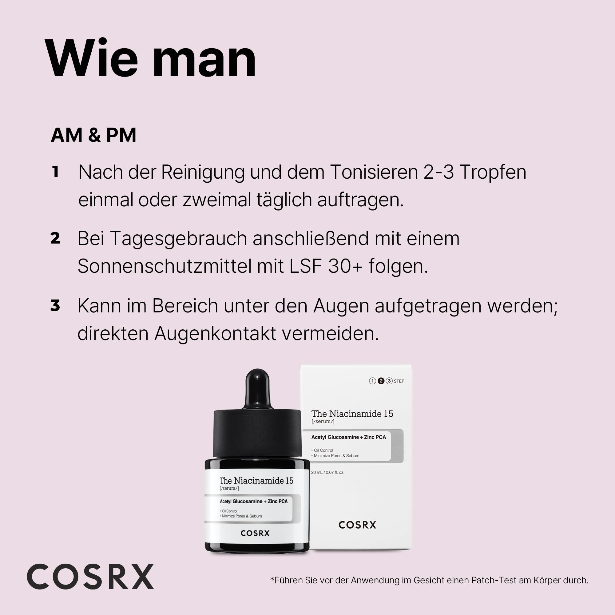 COSRX Niacinamide 15 % Gesichtsserum 20 ml – Porenverfeinernd, gegen Roetungen & Verfaerbungen, Koreanische Hautpflege