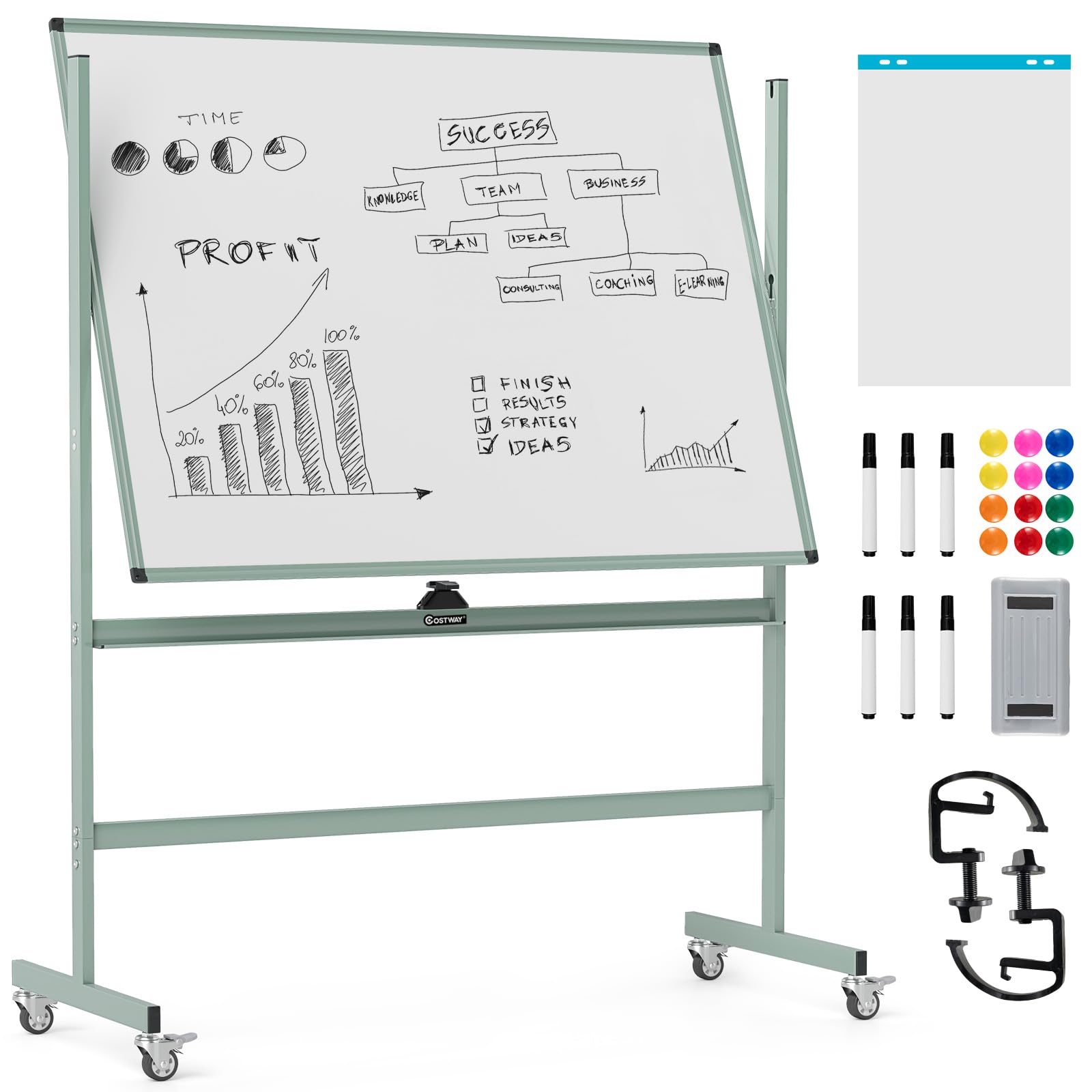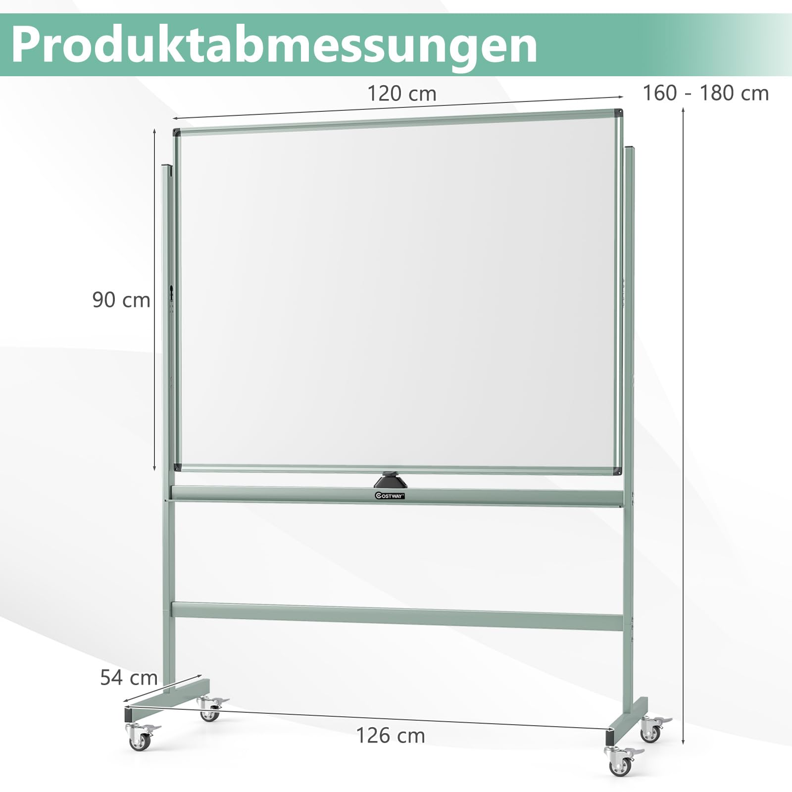 COSTWAY Doppelseitiges mobiles Whiteboard, 120 x 90 cm, höhenverstellbares magnetisches Whiteboard mit Rädern & Ständer, rollende Weisstafel inkl. Zubehör für Klassenzimmer Büro Hause