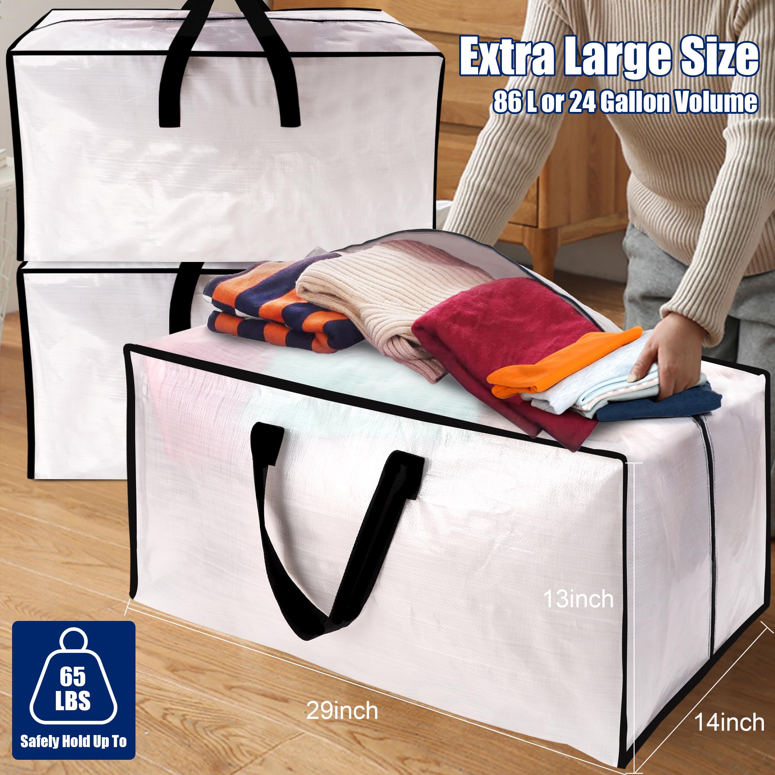 Vielseitig einsetzbar: Diese übergrossen Aufbewahrungstaschen sind ideal zum Aufbewahren, Transportieren und Organisieren einer Vielzahl von Gegenständen, einschliesslich Kleidung, Spielzeug, Schuhe, Handtücher, Vorräte. Kissen, Bettwäsche, Bettwäsche, Decken, Kleidung, Weihnachtsdekorationen und mehr! Diese Taschen sind ideal für Reisen, wenn Sie zusätzliche Sachen haben, die nicht in Ihr Gepäck passen, oder wenn Sie unterwegs mit zusätzlichen Sachen nach Hause gehen. Ideal, um Unordnung loszuwerden und alles zu organisieren. Diese Taschen sind kompatibel mit IKEA Frakta Trolleys.