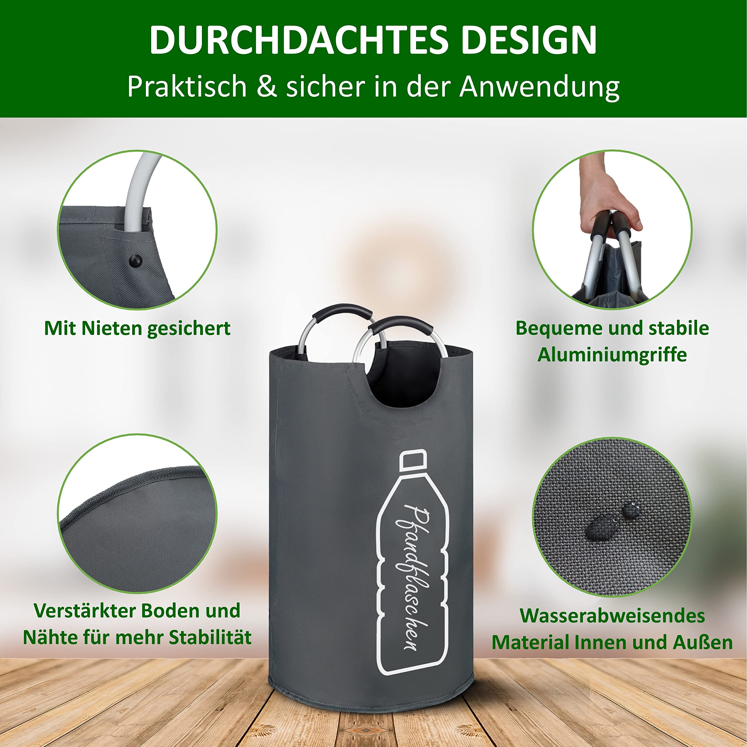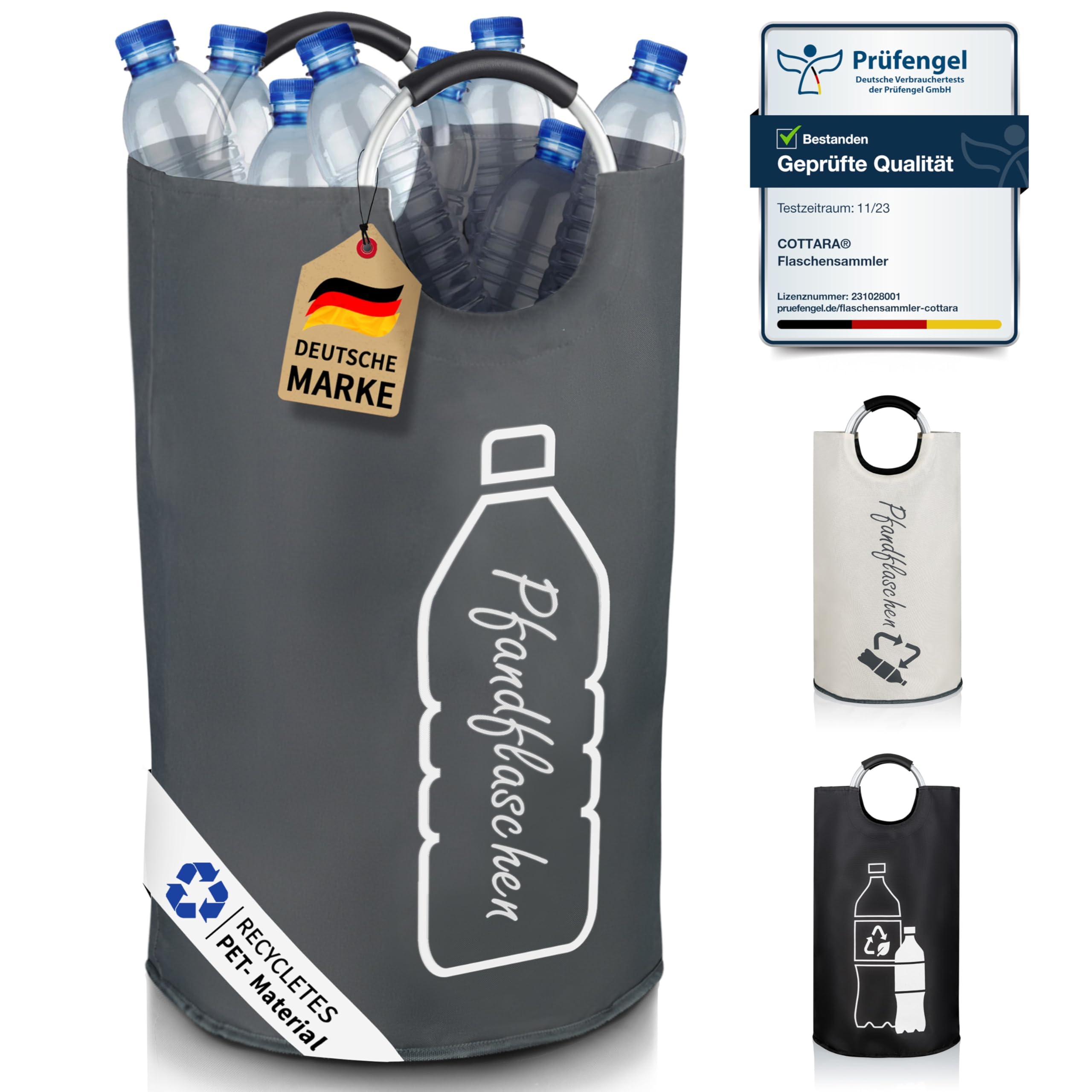 COTTARA® Original Pfandflaschen Sammelbehälter – Flaschensammler Leergut Behälter aus wasserabweisendem Material für Küche – Idealer Pfandbehälter zur Flaschenaufbewahrung – grau 70L