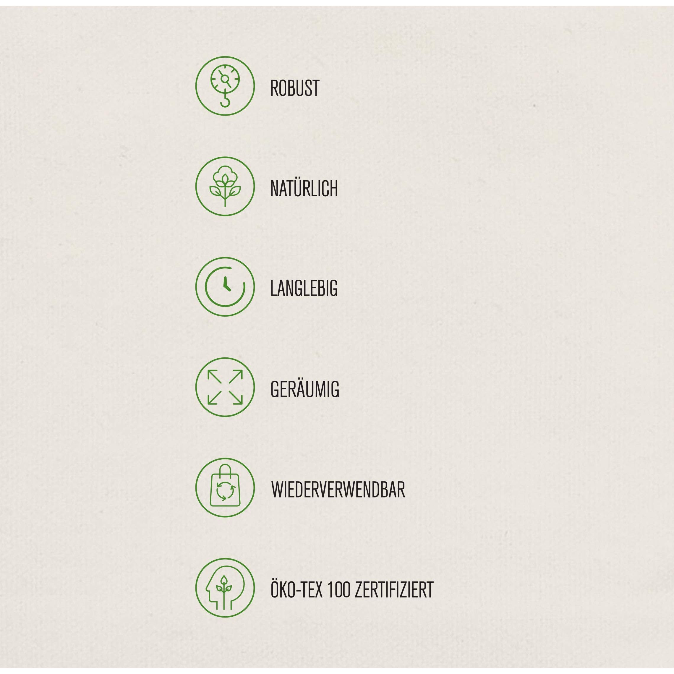 Diese Baumwolltasche wurde für den täglichen Einsatz entwickelt, bei dem herkömmliche Stoffbeutel schnell an ihre Grenzen kommen. Mit einem Materialgewicht von 220 g/m² bietet sie eine spürbar festere Struktur, die Form hält und auch bei höherer Belastung stabil bleibt. Das grosszügige Format von 45 x 38 x 16 cm mit integrierter Bodenfalte schafft zusätzlichen Stauraum und macht die Tasche vielseitig einsetzbar – ob für Einkäufe, Unterlagen oder den Alltag unterwegs. Die langen schwarzen Henkel mit 60 cm Länge ermöglichen ein bequemes Tragen über der Schulter und sorgen für hohen Komfort, auch bei längerer Nutzung. Durch die schlichte, natürliche Optik eignet sich die Tasche sowohl für den direkten Einsatz als auch als Basis für individuelle Gestaltung. Ob bemalt, bedruckt oder pur getragen – sie passt sich flexibel unterschiedlichen Anforderungen an und überzeugt durch ihre langlebige Verarbeitung.