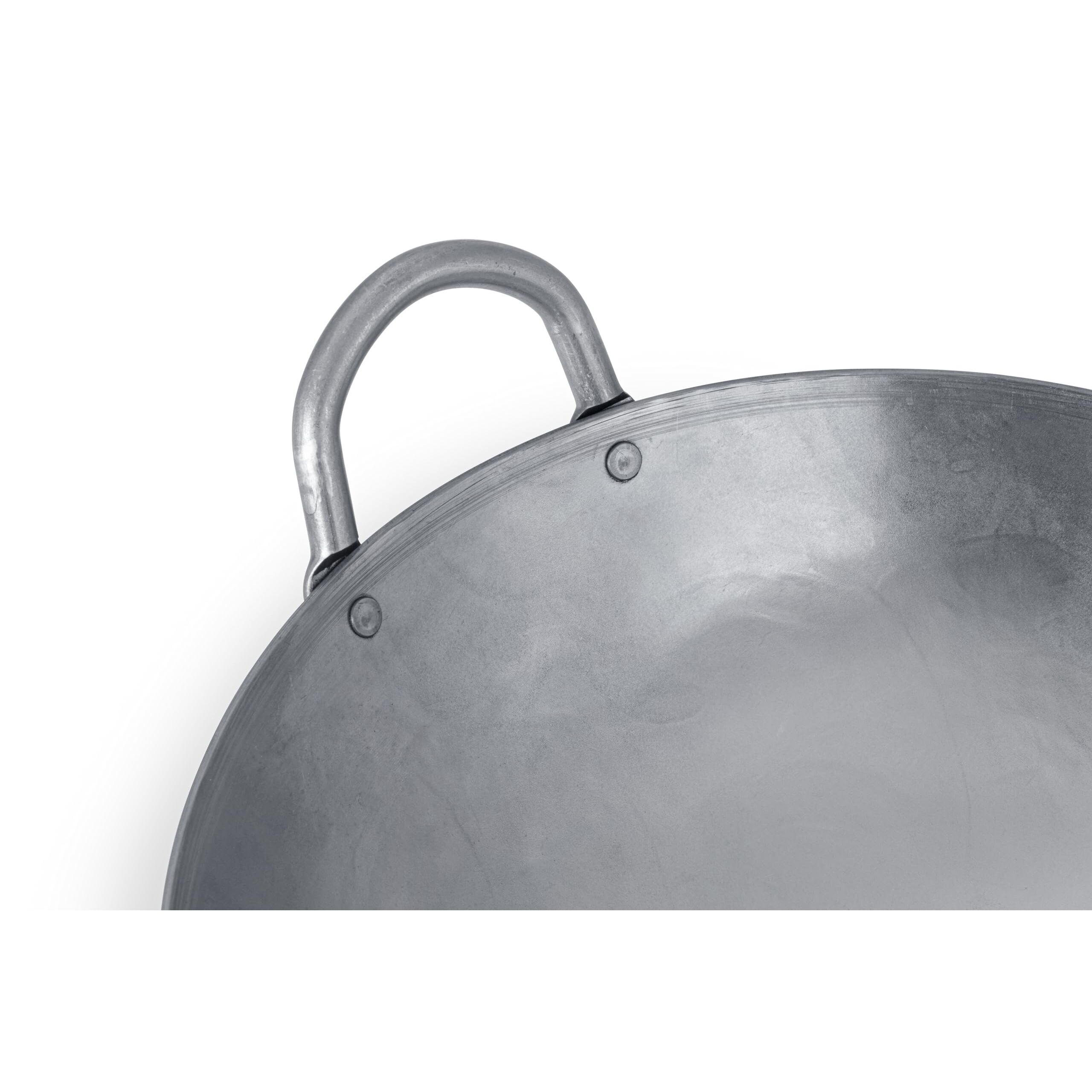 Craft Wok Traditioneller handgehämmerter Karbonstahl Pow Wok mit Holz- und Stahl-Helfergriff (30,5 cm, runder Boden) / 731W88-12in