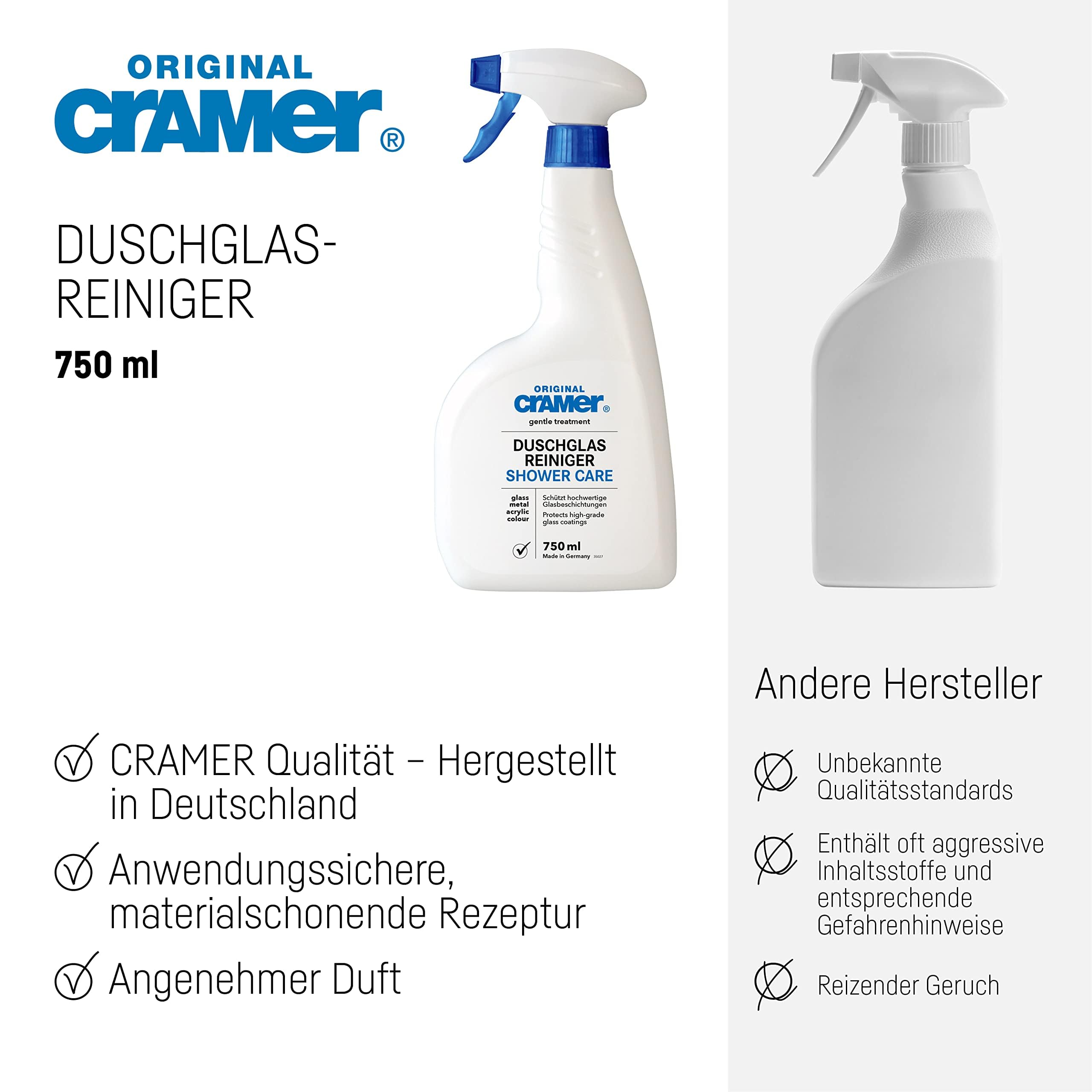 Cramer Duschglas-Reiniger 750 ml gegen Kalk und Schmutz - für Glasdusche, Duschkabine - besonders schonender Spezialreiniger für beschichtete & unbeschichtete Glasoberflächen