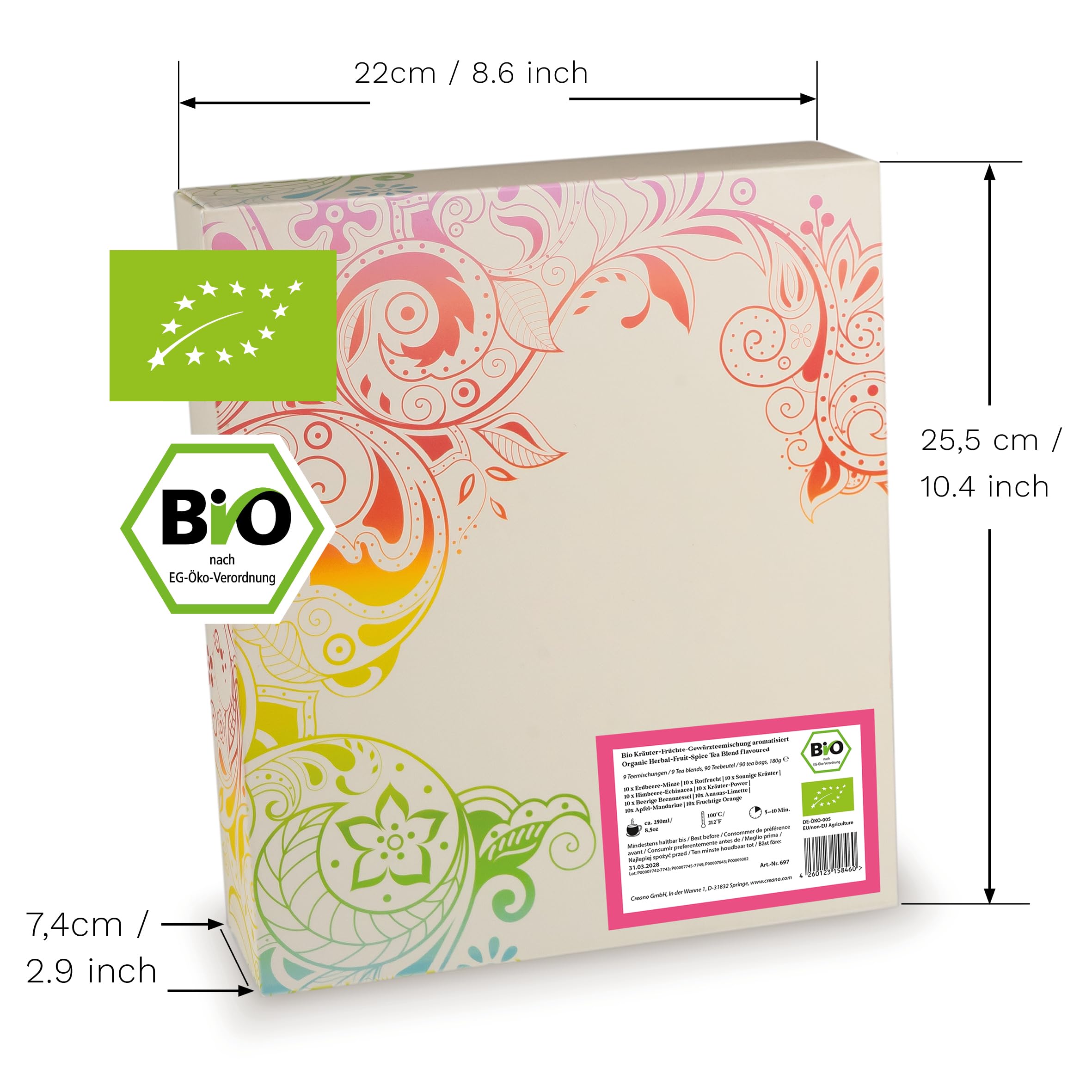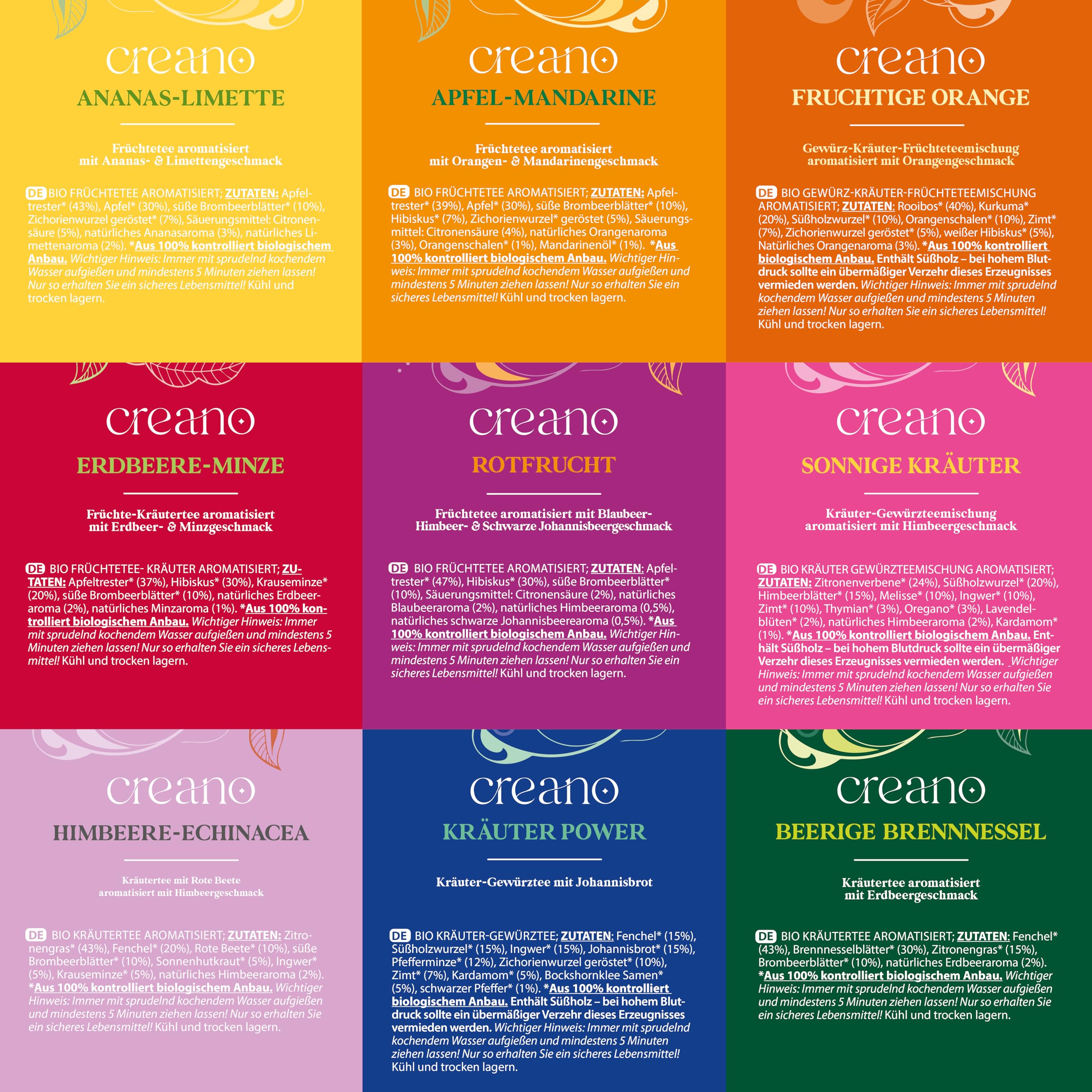 Creano Bio Früchtetee Kräutertee Geschenkset - 90 Bio-Teebeutel in 9 traumhaften Sorten - 180g*