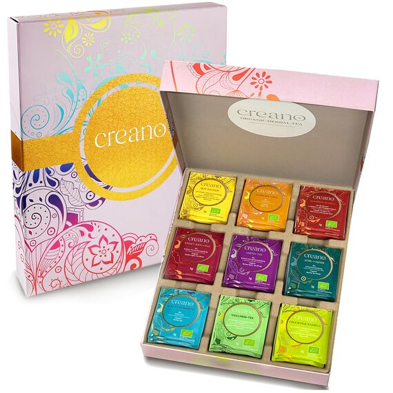 Creano Bio Kräutertee Geschenkset „ORGANIC HERBAL TEA“ - 45 Bio-Teebeutel in 9 unterschiedlichen Sorten - 90g - NEUHEIT 2022*