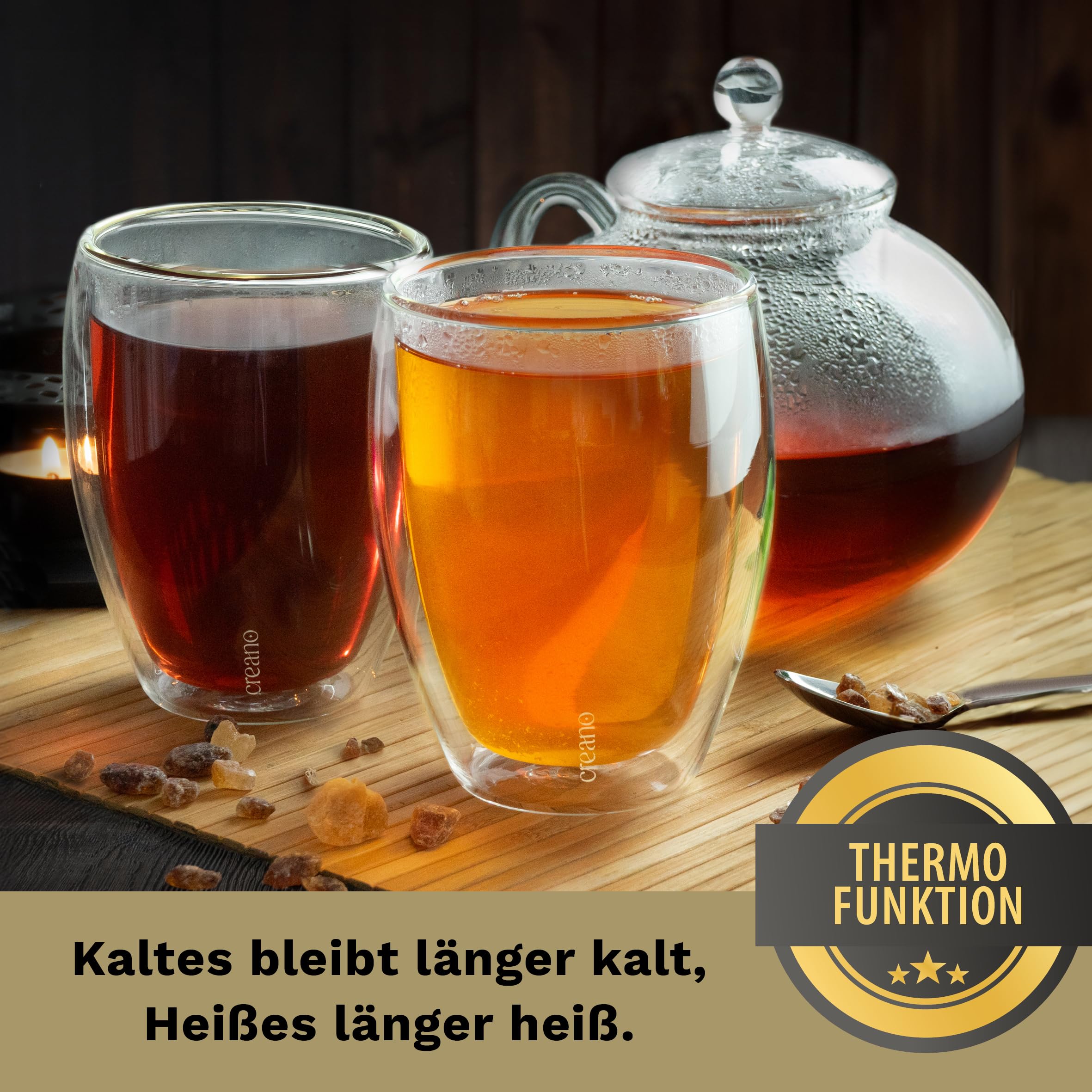 Creano PREMIUM doppelwandige Trinkgläser 400ml - 6er Set - OHNE versiegeltes LOCH deshalb Gastronomie Qualität - 100% Spülmaschinenfest - doppelwandige Gläser - Latte Gläser - Cappucinotassen