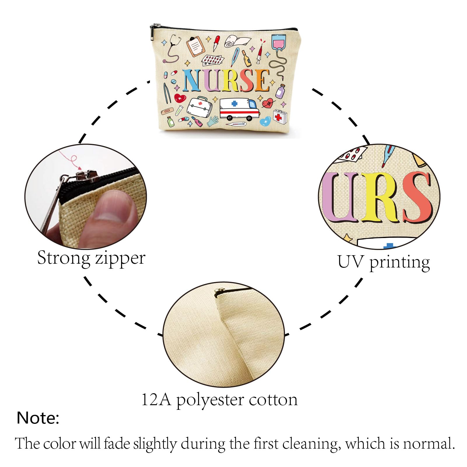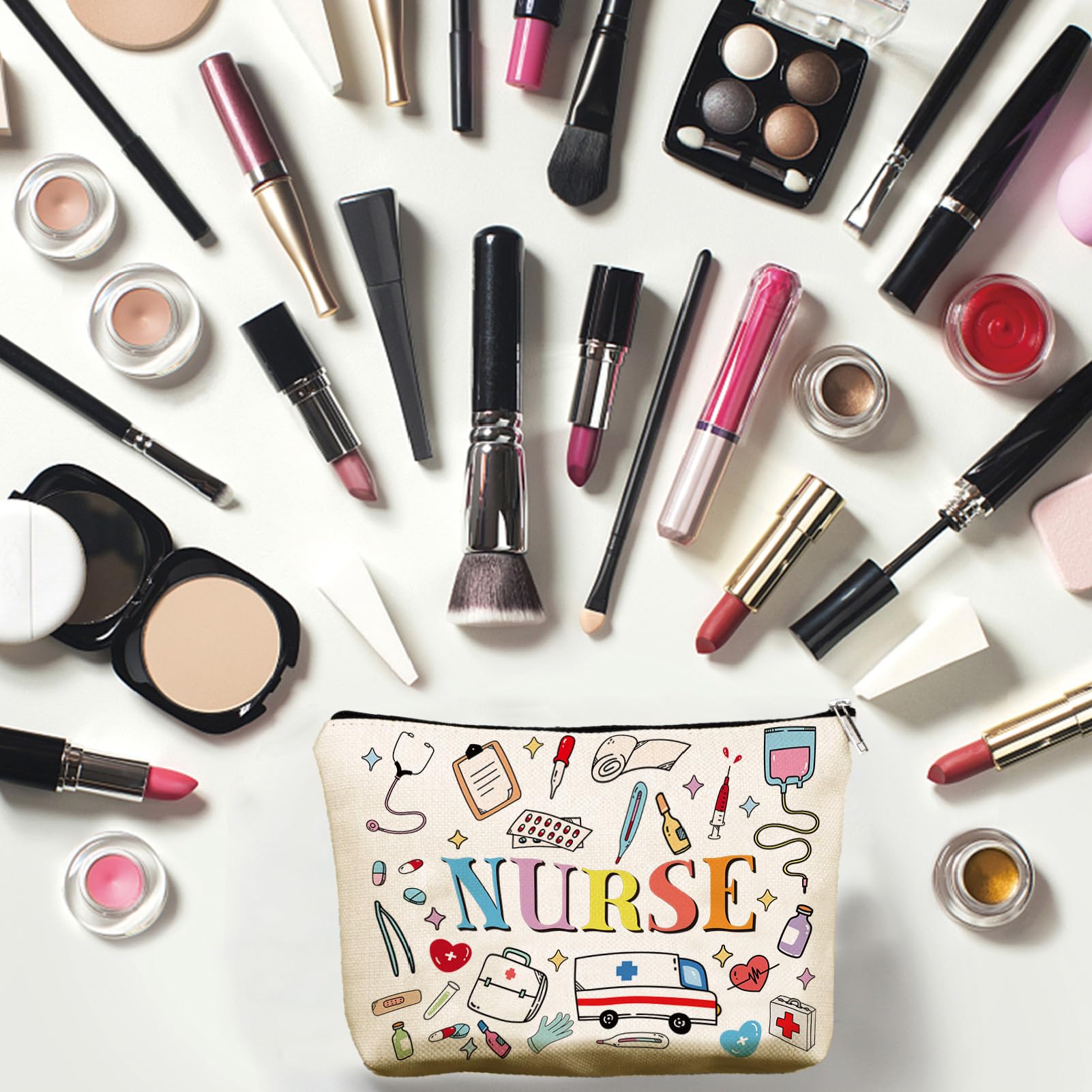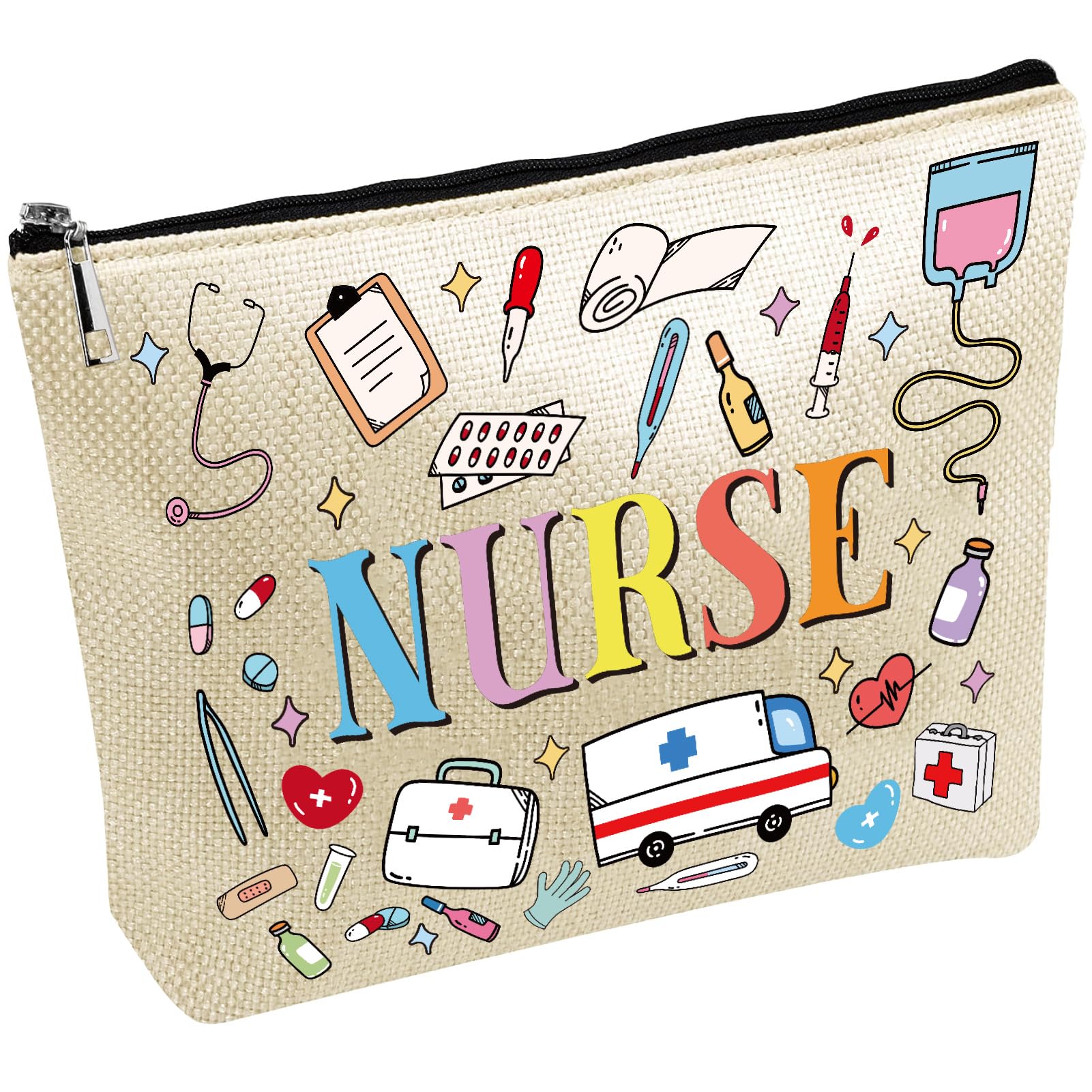CREATCABIN Aufbewahrungstasche für Krankenschwestern – Bunte Canvas Kosmetiktasche mit grosser Kapazität (25 × 18 cm)